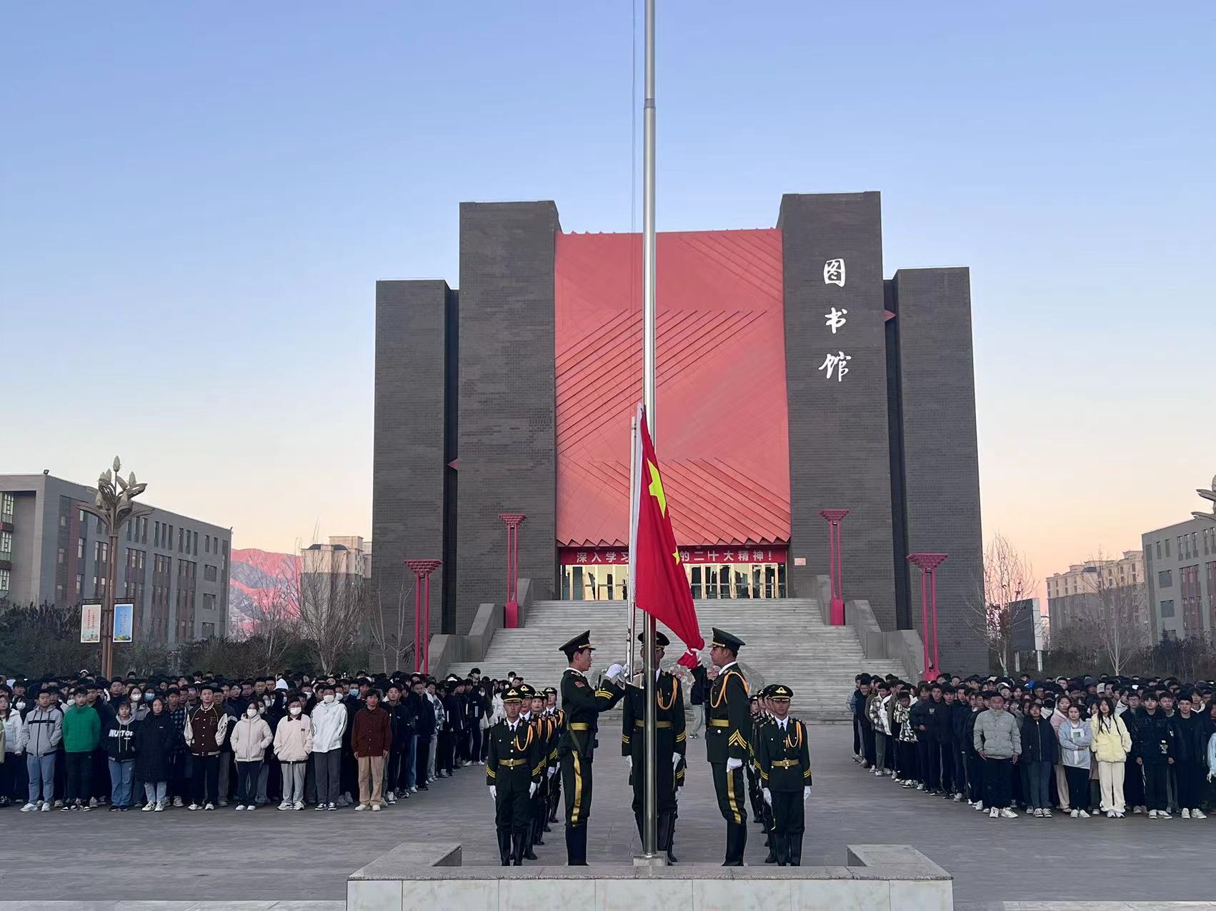 11月6日早晨7:30,信息技術學院在圖書館廣場舉行升國旗儀式,黨總支書記潘從明及全體師生參加了此次升旗儀式。