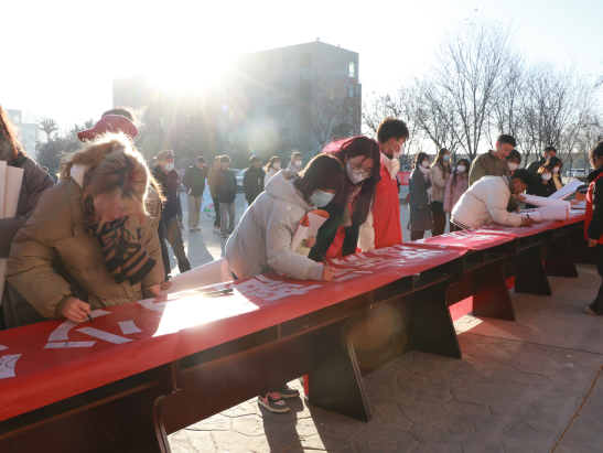 防艾知識(shí)宣傳志愿隊(duì)伍在大學(xué)生活動(dòng)中心廣場發(fā)放宣傳手冊,制作并贈(zèng)送紅絲帶標(biāo)志400余個(gè),活動(dòng)中對(duì)300余名學(xué)生進(jìn)行了免費(fèi)艾滋病檢測。同學(xué)們一同在宣傳條幅上簽名,祝福語書滿了紅絲帶,一撇一捺、一筆一劃,都是無數(shù)的信念與期望的匯聚,是大家用無聲的行動(dòng)承諾自己防艾的決心。