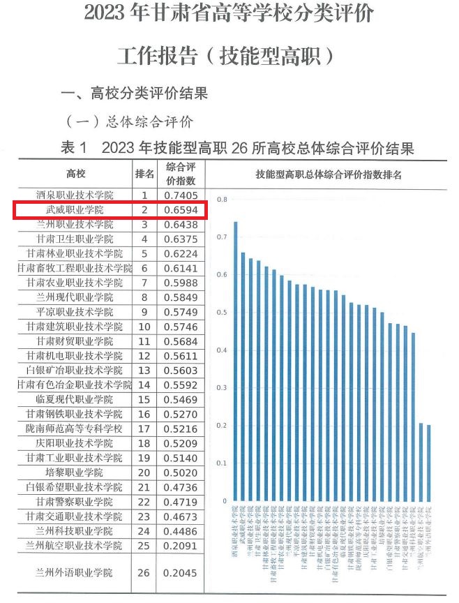 武威職業(yè)學院2023年高校分類評價結(jié)果綜合排名第二