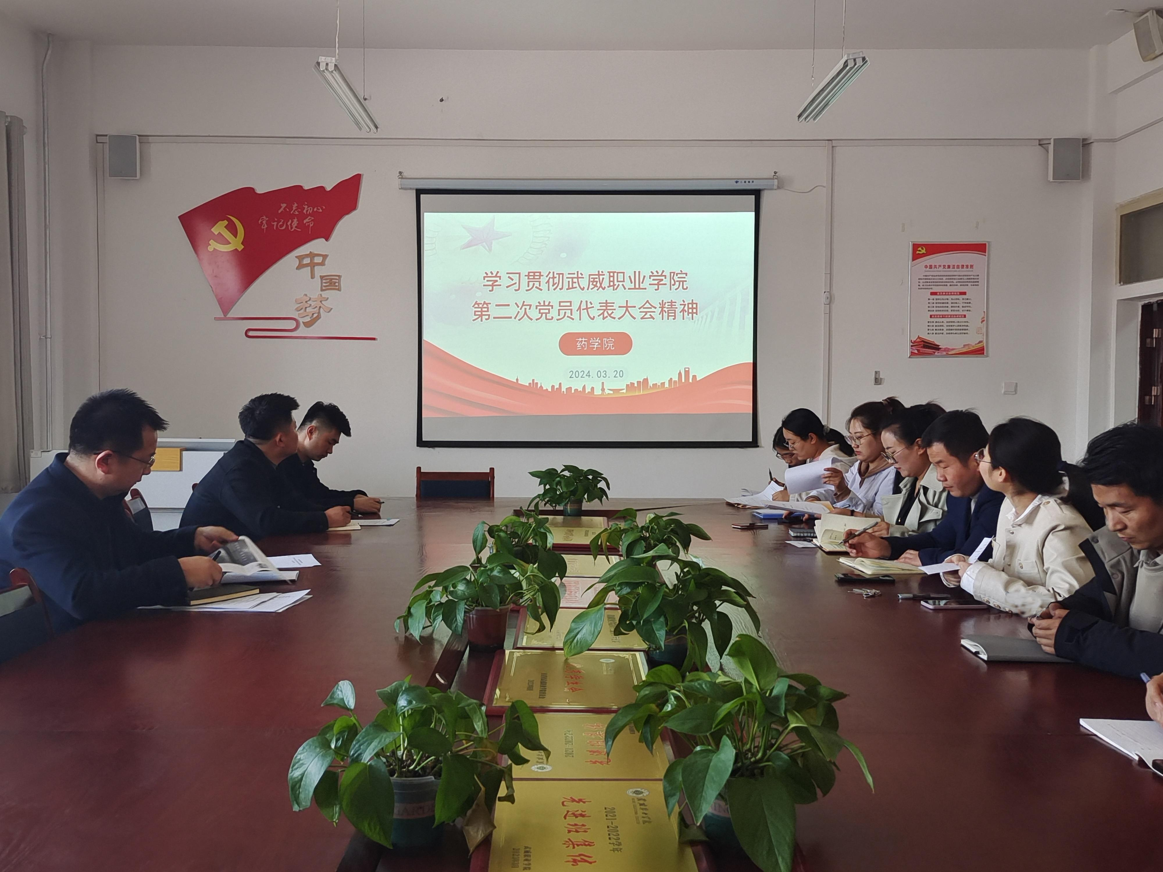 3月20日下午,藥學(xué)院召開專題會議學(xué)習(xí)宣傳貫徹武威職業(yè)學(xué)院第二次黨代會精神。會議由學(xué)院負責(zé)人楊建美主持,全體教職工參加了會議。