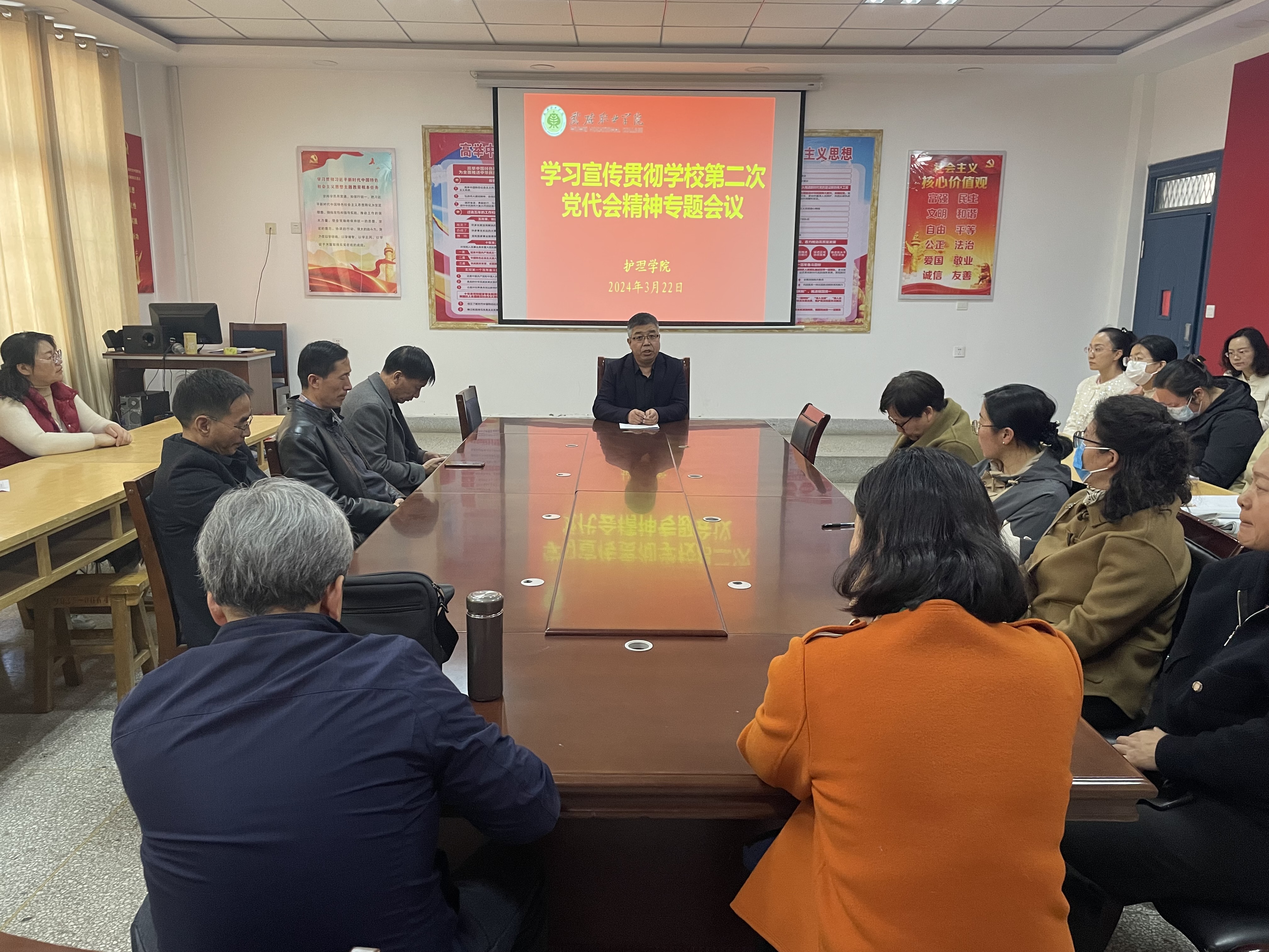 中國共產黨武威職業(yè)學院第二次代表大會的勝利召開,在護理學院廣大教職工中引起了熱烈反響。根據學校黨委要求,3月22日,護理學院召開全體教職工會議,專題學習宣傳貫徹學校第二次黨代會精神,會議由黨總支書記張建輝主持。