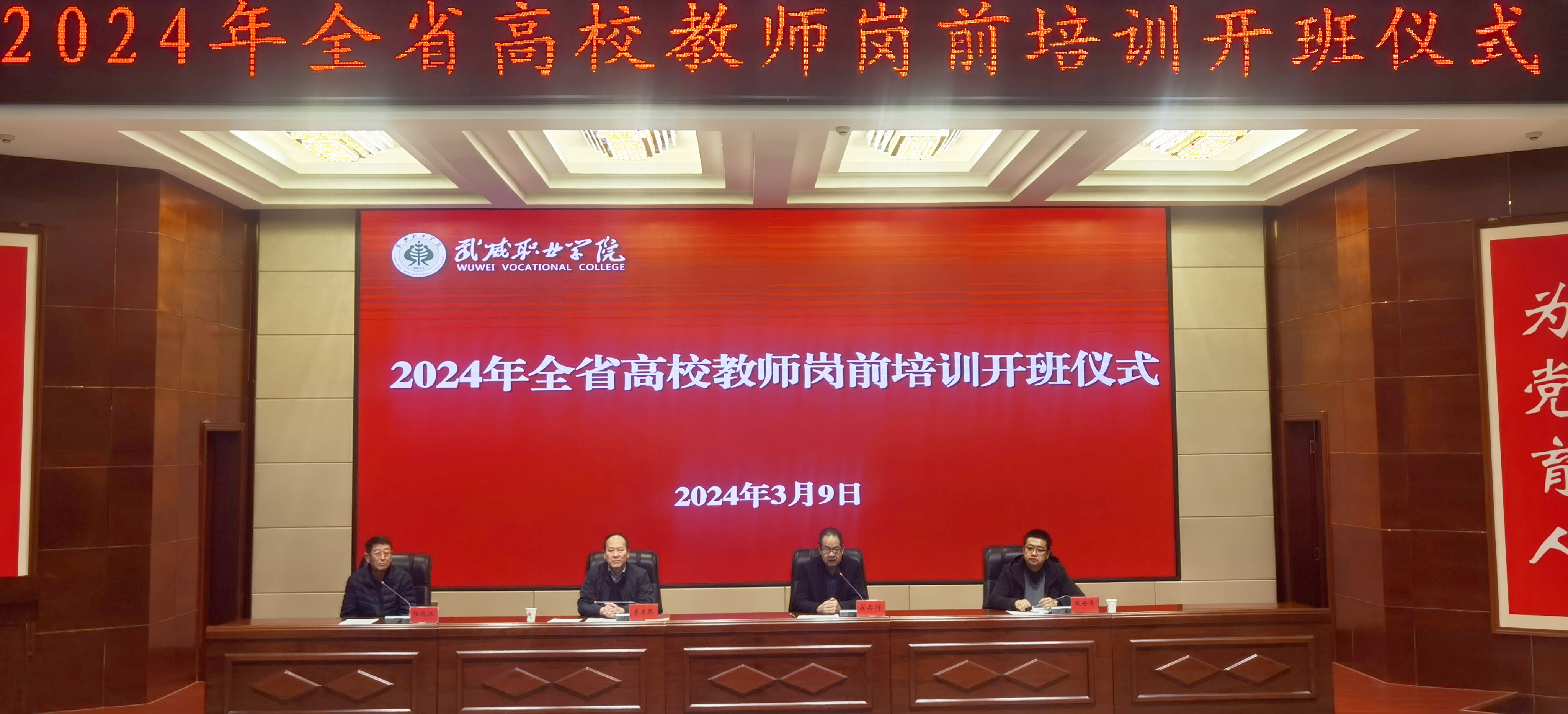 為引導(dǎo)廣大教師深刻領(lǐng)會(huì)教育家精神,牢記“為黨育人、為國(guó)育才”初心使命,樹(shù)立躬耕教壇信念,培養(yǎng)高素質(zhì)教師隊(duì)伍,3月9日上午,我校2024年上半年兼職教師崗前培訓(xùn)教學(xué)班開(kāi)班儀式暨第一階段集中培訓(xùn)在學(xué)生發(fā)展中心菁英廳舉行。西北師范大學(xué)繼續(xù)教育學(xué)院副院長(zhǎng)李玉泉、武威職業(yè)學(xué)院黨委副書(shū)記翟存祥、教務(wù)處負(fù)責(zé)人張世亮出席會(huì)議并講話,142名兼職教師參加開(kāi)班儀式。儀式由甘肅省高等學(xué)校師資培訓(xùn)中心副主任陸北江主持。開(kāi)班儀式上,張世亮介紹了本次兼職教師崗前培訓(xùn)基本情況,對(duì)培訓(xùn)工作作了部署安排。