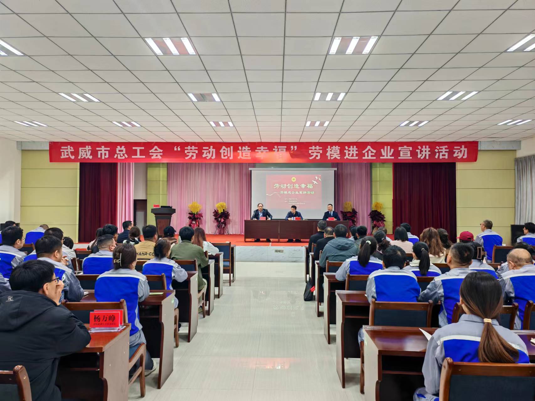 為弘揚(yáng)新時(shí)代的勞模精神、勞動(dòng)精神、工匠精神,進(jìn)一步營造勞動(dòng)最光榮、勞動(dòng)最崇高、勞動(dòng)最偉大、勞動(dòng)最美麗的濃厚氛圍,4月30日,市總工會(huì)、學(xué)校聯(lián)合開展的“勞動(dòng)創(chuàng)造幸?!眲谀_M(jìn)企業(yè)宣講活動(dòng)走進(jìn)青島啤酒武威有限責(zé)任公司,青島啤酒武威有限責(zé)任公司職工代表、學(xué)校勞模工匠技術(shù)服務(wù)團(tuán)隊(duì)120多人參加活動(dòng)。