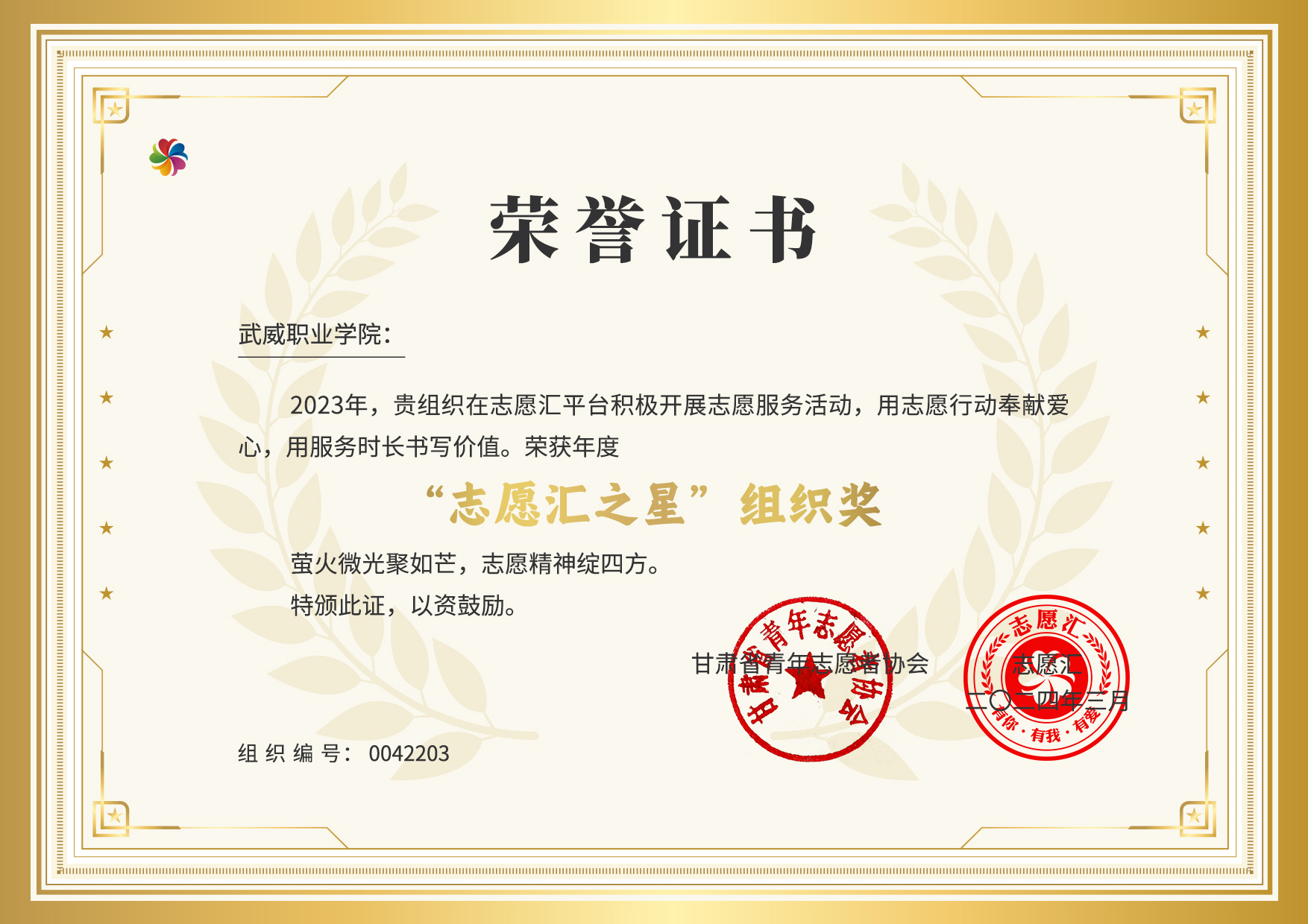 該獎項由甘肅省青年志愿者協(xié)會根據(jù)“志愿匯”平臺入駐組織2023年度志愿服務活動發(fā)布數(shù)、簽到總人次、服務總時長、工作支持力度等維度綜合評價產(chǎn)生,旨在大力弘揚“奉獻、友愛、互助、進步”志愿精神,進一步提高志愿服務組織的知名度和影響力。