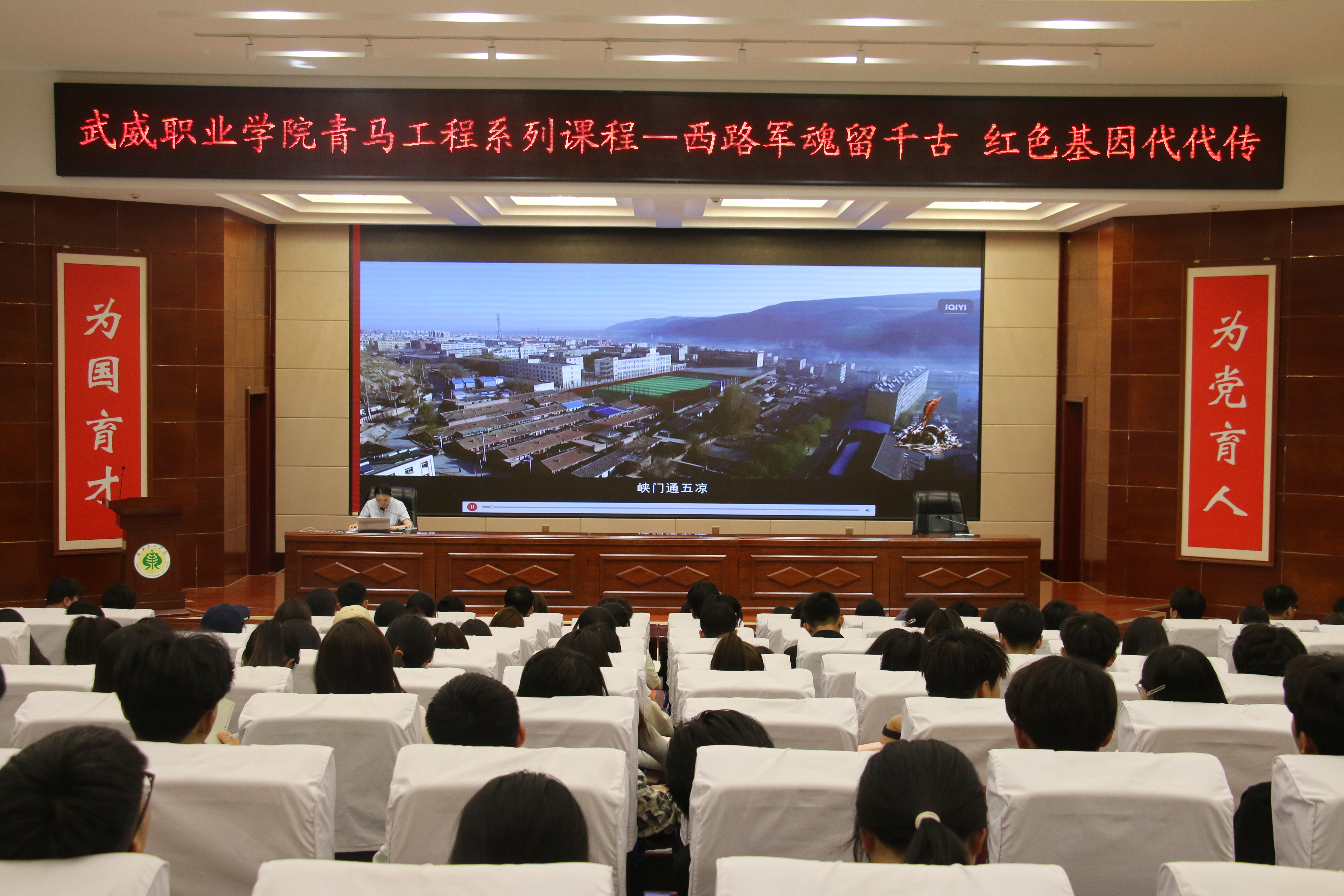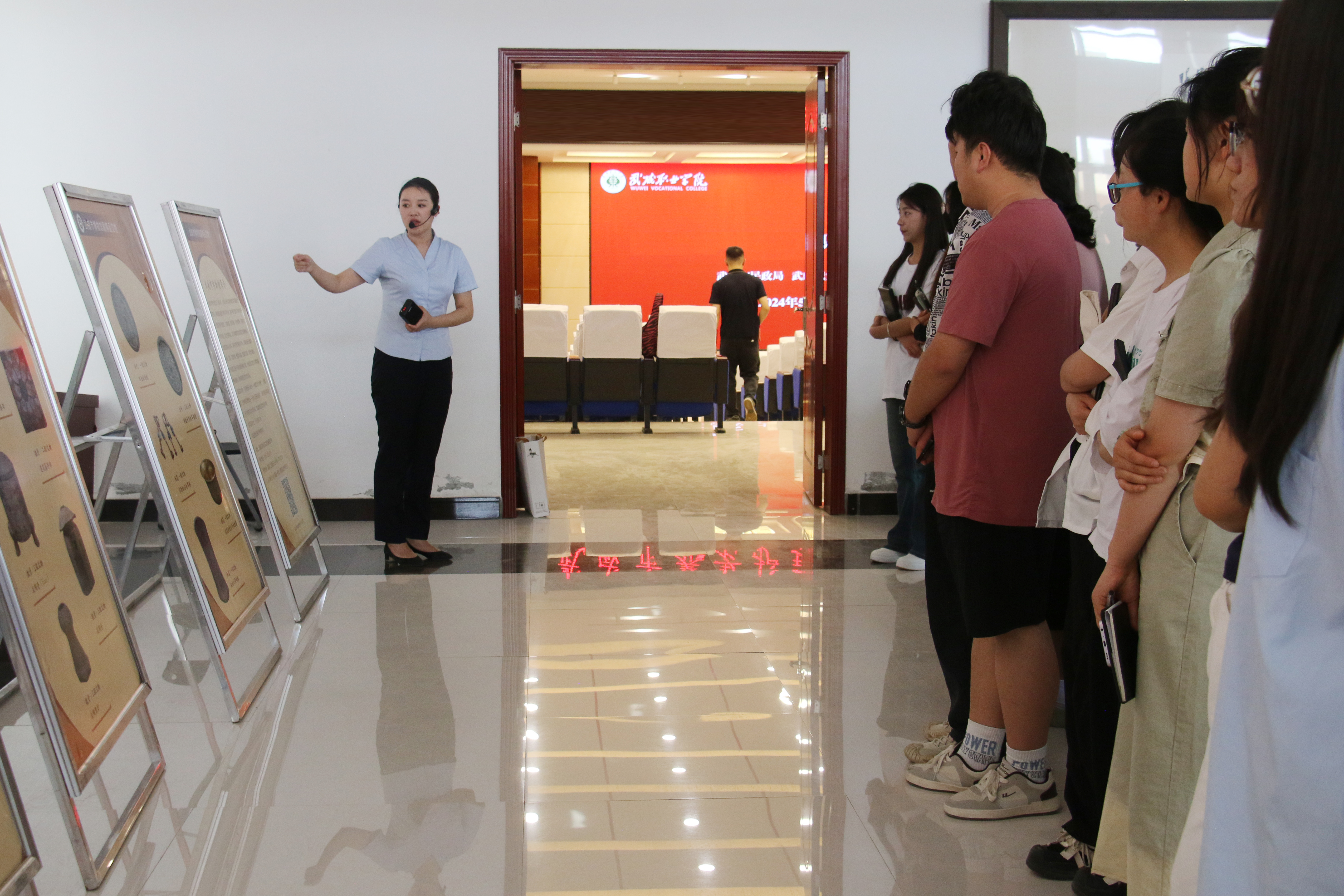 為進一步感受武威深厚歷史文化,培植學生家國情懷,激發(fā)學生文化自信與自豪感,5月22日下午,“武威市博物館流動展覽和精品課程”進校園活動在學校菁英廳舉辦。學?!扒囫R工程”學員和各二級學院學生代表220余人參加了活動。