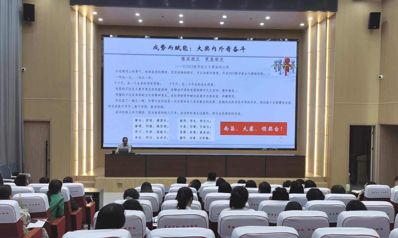 報告會上,翟存祥以2023年學校團隊在國賽的獲獎作品為例,從對標標準、汲取經(jīng)驗、團隊組建、內(nèi)容選題、人培完善、課標修訂、教學實施、教案撰寫、課堂實錄、賽場答辯等十個方面進行了詳盡細致的剖析講解。