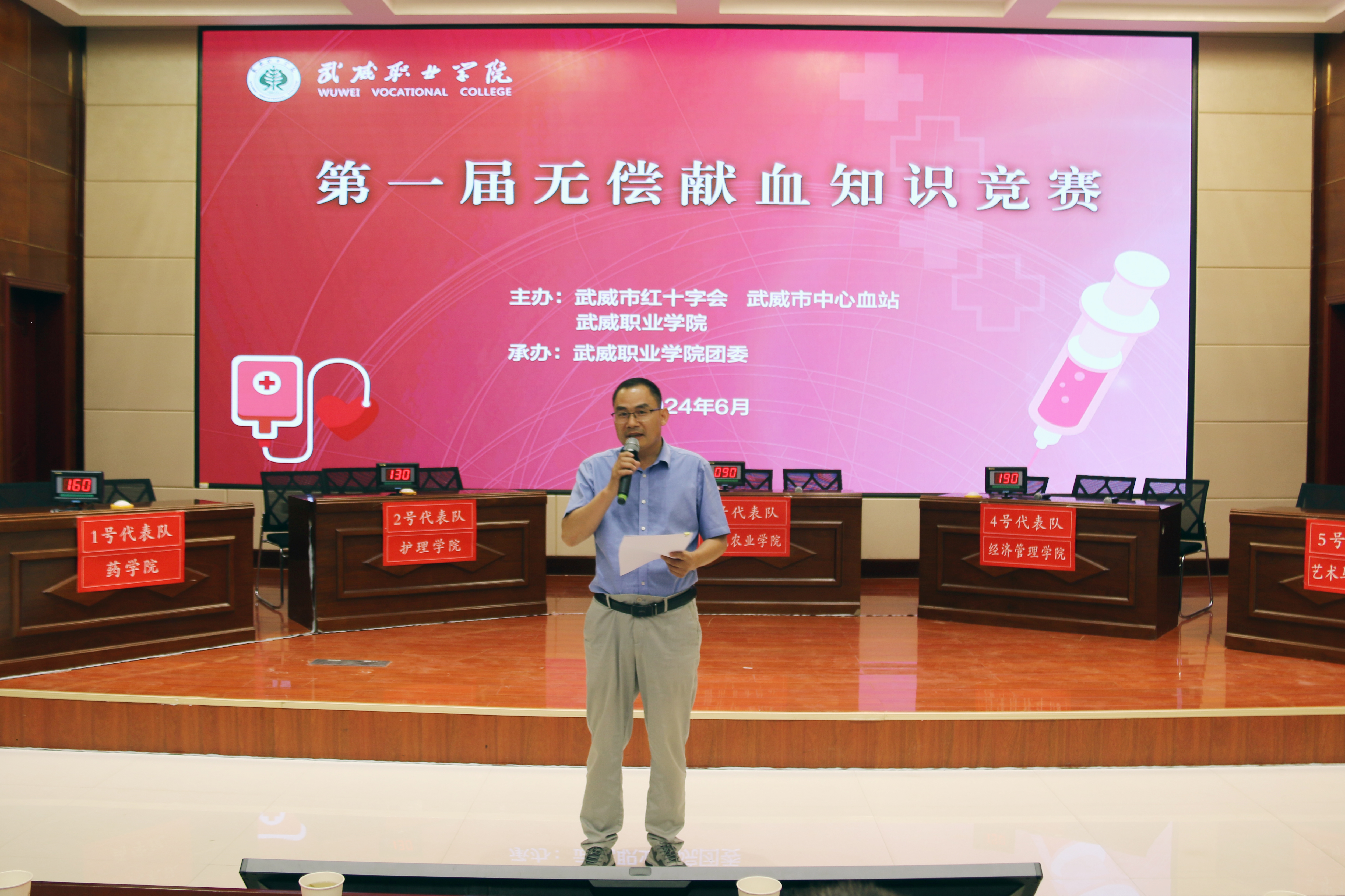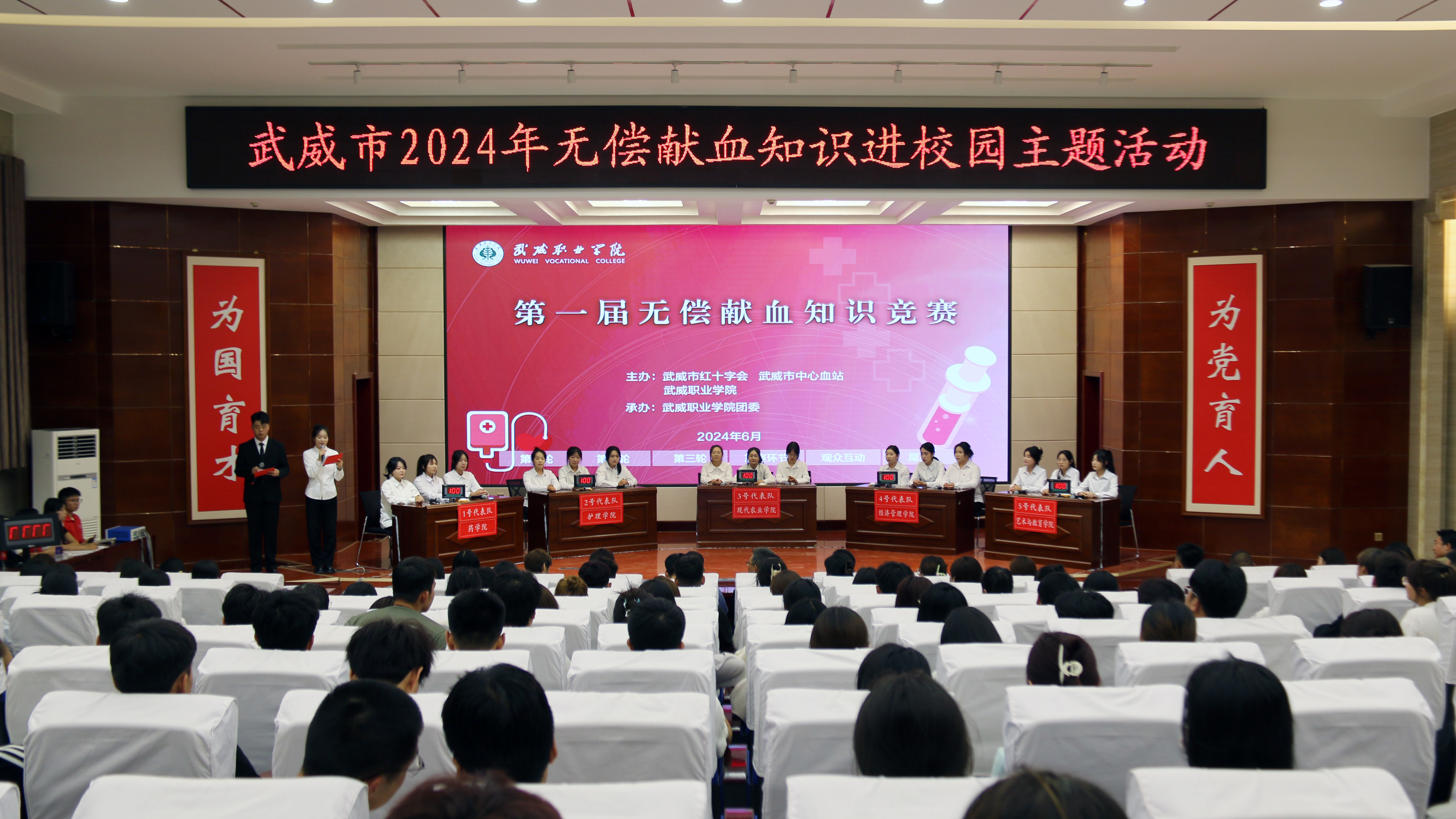 武威市紅十字會(huì)副會(huì)長(zhǎng)張勇,武威市中心血站站長(zhǎng)王磊,武威市中心血站副站長(zhǎng)岳文清,學(xué)校黨委委員、副校長(zhǎng)王永緒出席活動(dòng),各二級(jí)學(xué)院的200余名師生觀看比賽。