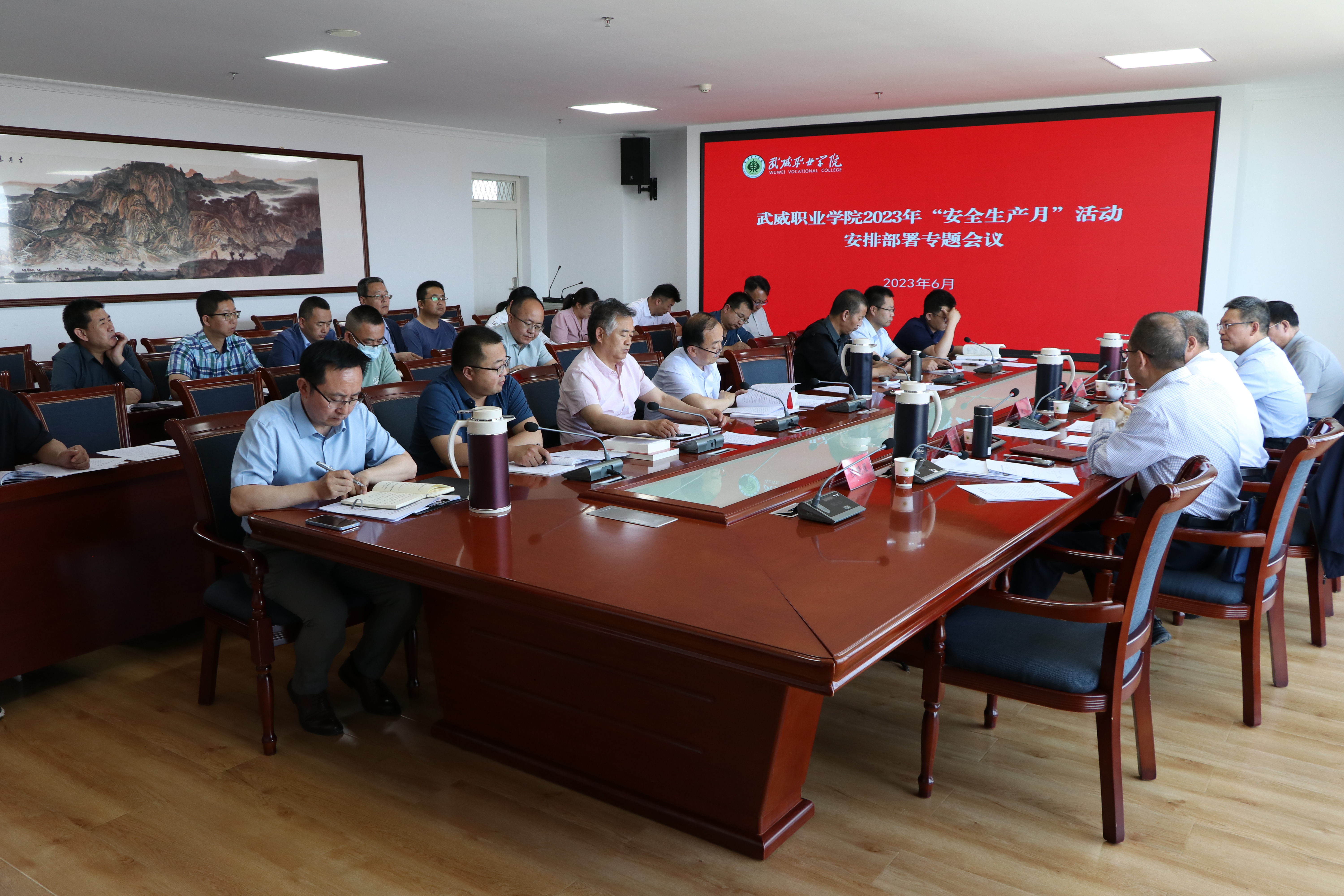 會(huì)議傳達(dá)學(xué)習(xí)了省教育廳《關(guān)于開展2023年教育系統(tǒng)“安全生產(chǎn)月”活動(dòng)的通知》精神,并審定通過(guò)了《武威職業(yè)學(xué)院2023年“安全生產(chǎn)月”活動(dòng)實(shí)施方案》。