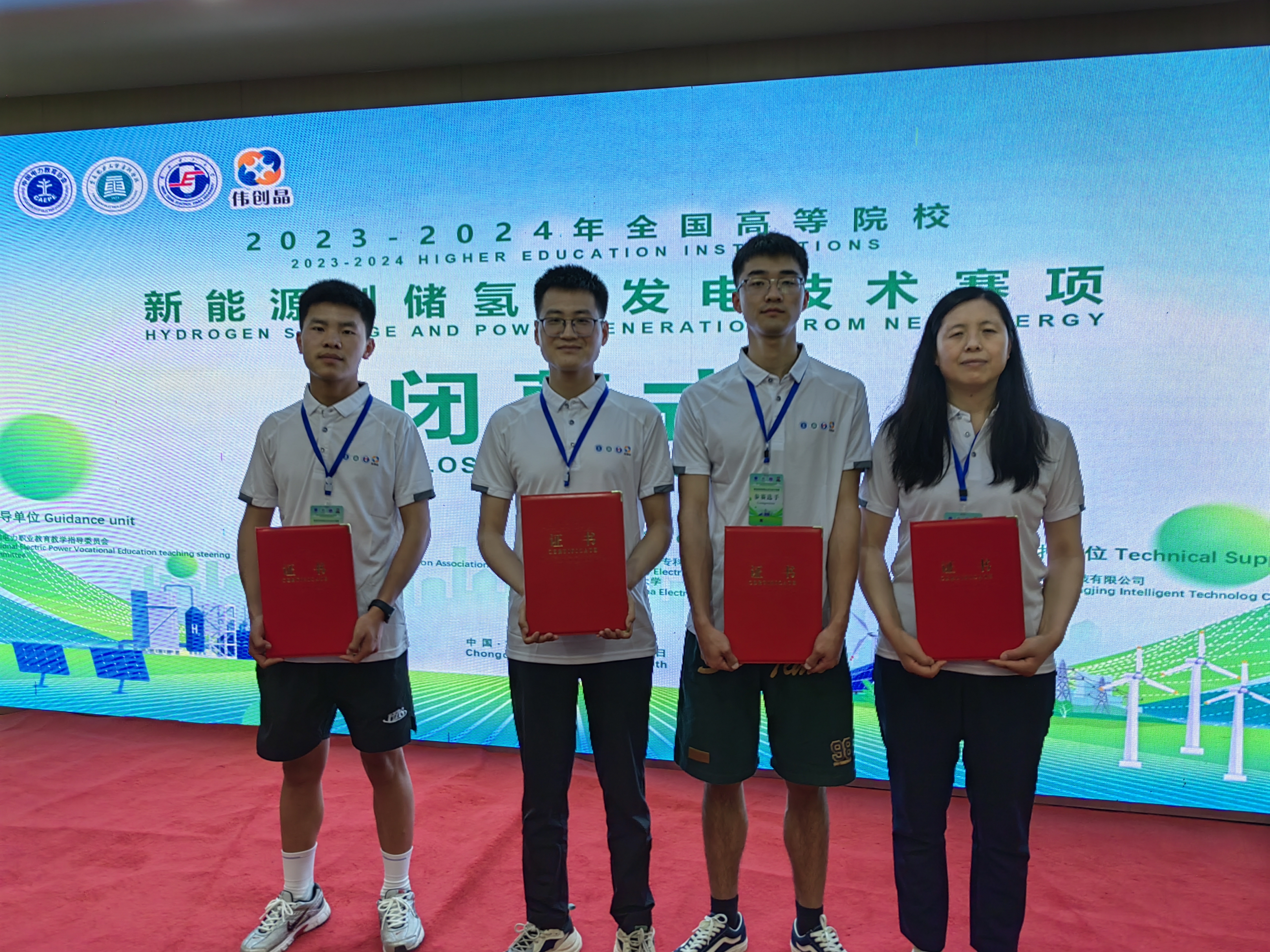 5月17日,全國首屆高等學(xué)校新能源制儲氫及發(fā)電技術(shù)競賽在重慶電力高等??茖W(xué)校舉行,本次大賽由全國電力職業(yè)教育教學(xué)指導(dǎo)委員會指導(dǎo),中國電力教育協(xié)會主辦,華北電力大學(xué)、重慶電力高等??茖W(xué)校承辦。全國有22個省市48所高校108支隊伍參賽。參賽采用1名教師和1名學(xué)生師生聯(lián)賽方式進行。我校中科低碳新能源技術(shù)學(xué)院教師王續(xù)峰和學(xué)生王智組成的參賽1隊榮獲全國二等獎,教師黃菊梅和學(xué)生董杰組成的參賽2隊榮獲全國三等獎。
