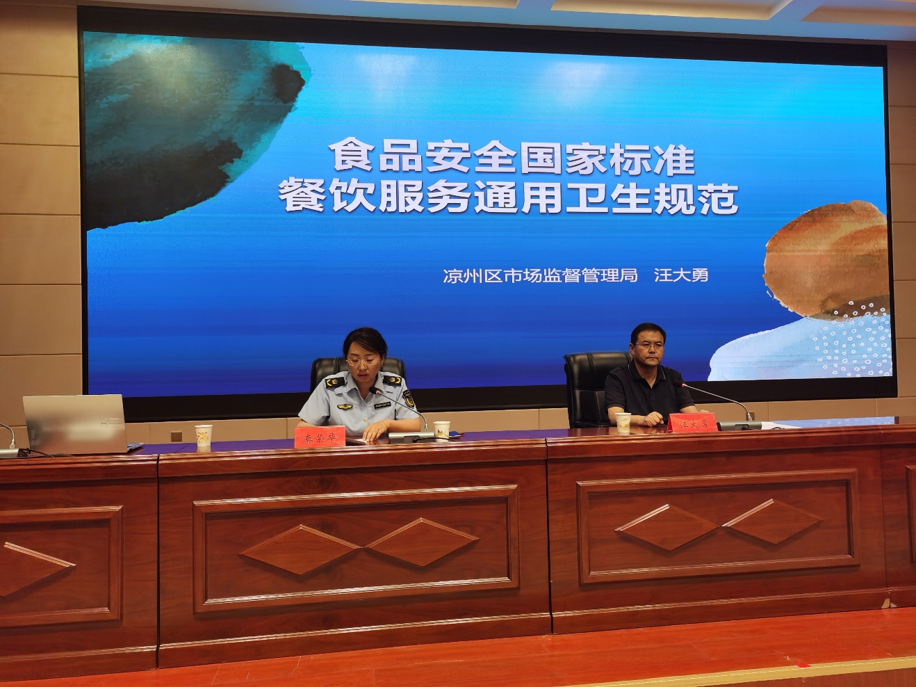 為加強(qiáng)學(xué)校食品安全管理,提升從業(yè)人員食品安全意識(shí)和服務(wù)水平,強(qiáng)化操作流程規(guī)范化、嚴(yán)格化、制度化和日常行為習(xí)慣養(yǎng)成,切實(shí)做好學(xué)校師生飲食安全保障工作。7月13日,學(xué)校邀請(qǐng)涼州區(qū)市場(chǎng)監(jiān)督管理局副局長(zhǎng)汪大勇同志對(duì)學(xué)校食堂從業(yè)人員進(jìn)行食品安全知識(shí)培訓(xùn),學(xué)校食堂相關(guān)經(jīng)營(yíng)單位負(fù)責(zé)人和從業(yè)人員180多人參加了培訓(xùn)。會(huì)議由學(xué)校黨委委員、副校長(zhǎng)王永緒同志主持。