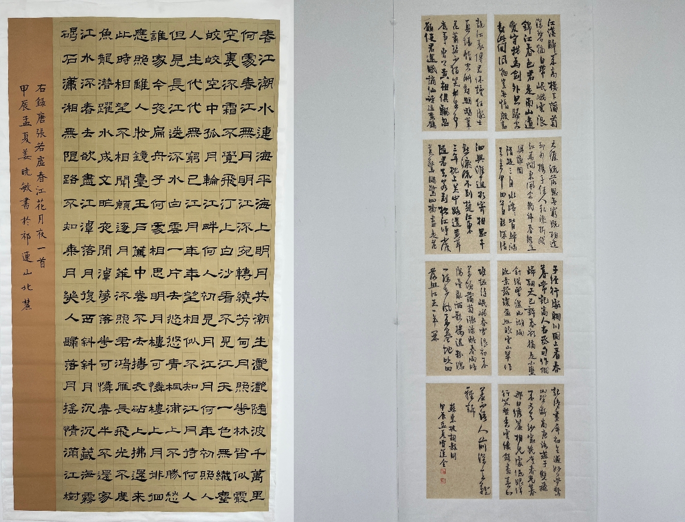 經(jīng)學(xué)校層層選拔,共推送11件作品參加省級(jí)比賽。學(xué)生誦讀作品《在歡呼的人群中》在“誦讀中國(guó)”經(jīng)典誦讀大賽省賽中獲得一等獎(jiǎng),《前赤壁賦》《臨安遺恨》獲得二等獎(jiǎng);教師誦讀作品《春江花月夜》獲優(yōu)秀獎(jiǎng)。軟筆書(shū)法作品《春江花月夜》和《踔歷奮楫聯(lián)》在“筆墨中國(guó)”漢字書(shū)寫(xiě)大賽省賽中分別獲大學(xué)生組二等獎(jiǎng)和三等獎(jiǎng);教師軟筆書(shū)法作品《蘇軾詞數(shù)則》獲三等獎(jiǎng)。誦讀作品《在歡呼的人群中》《前赤壁賦》《臨安遺恨》均入圍國(guó)賽。