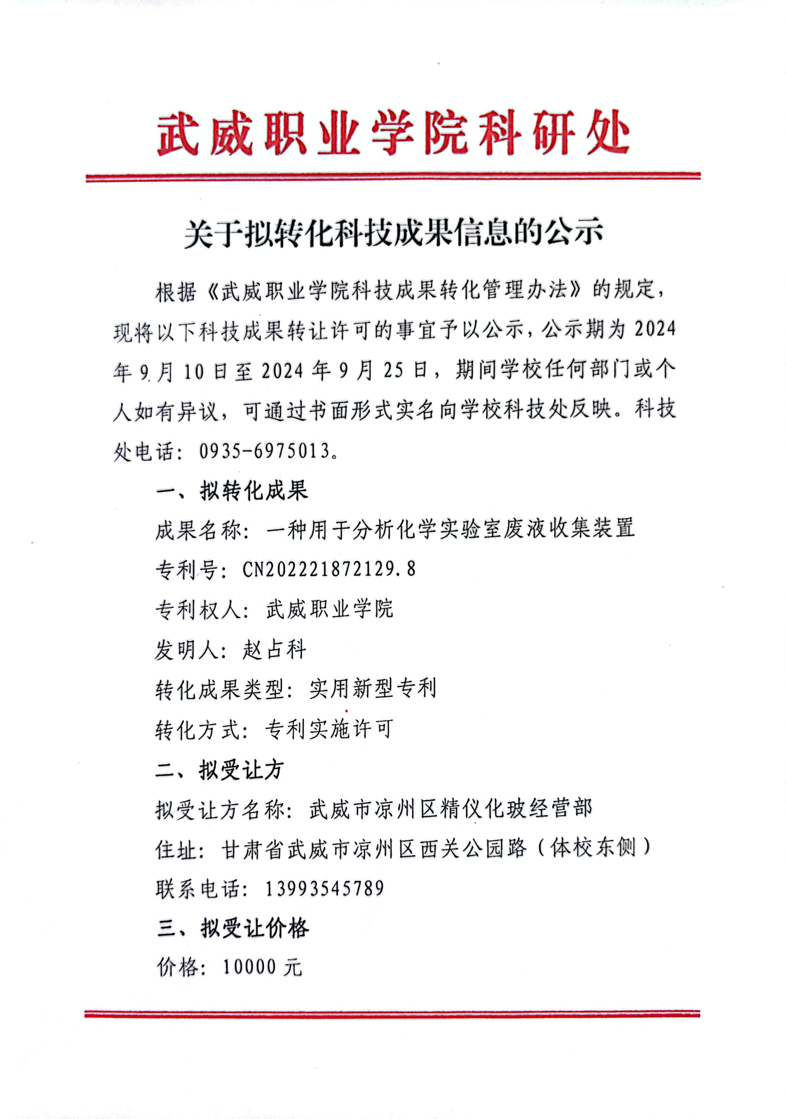 武威職業(yè)學(xué)院科技成果轉(zhuǎn)化管理辦法