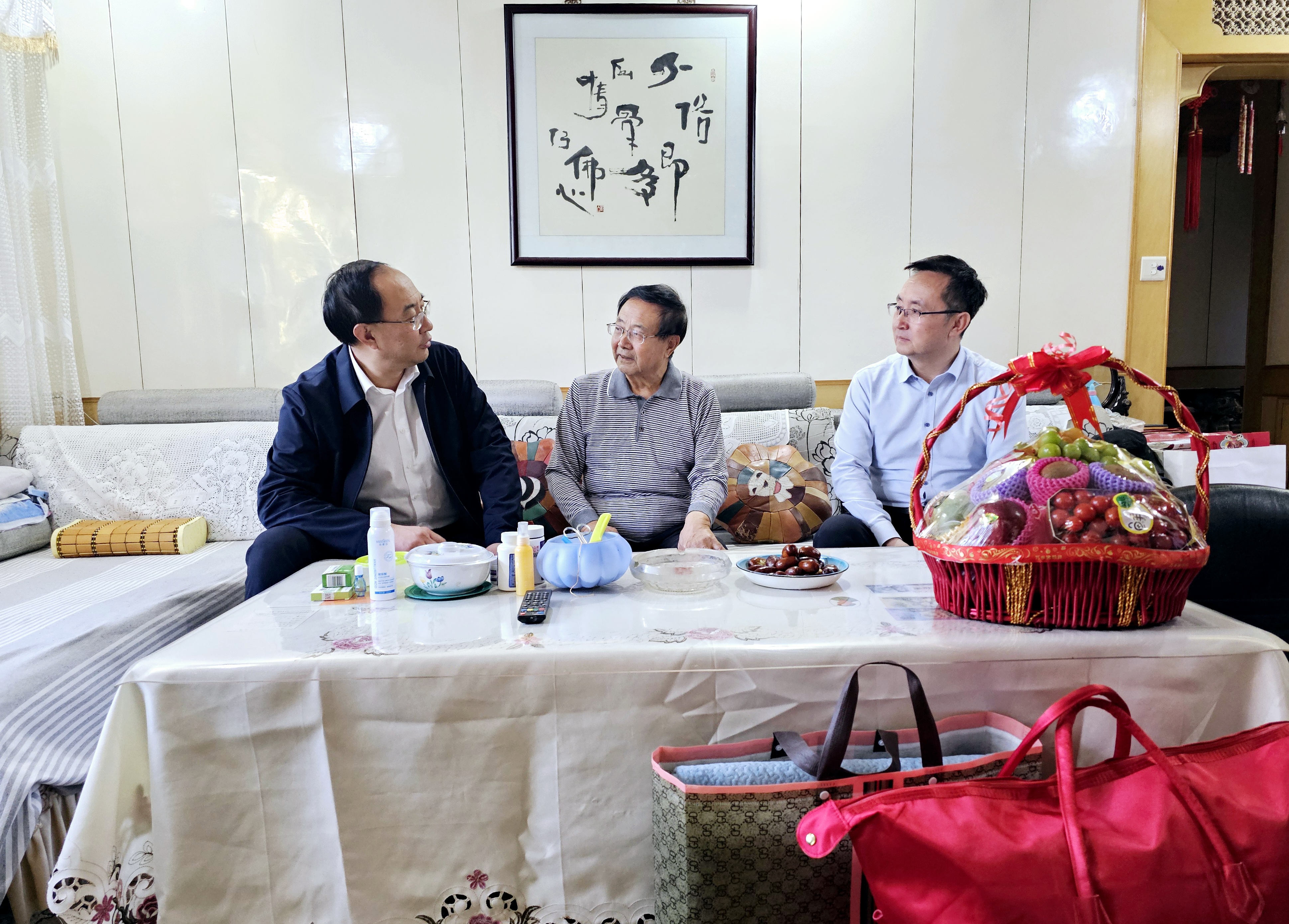 在原黨委書記顏宗明家中,黨委書記王宏關(guān)切詢問其身體狀況和生活情況,共話近年來學(xué)校發(fā)展變化,暢談美好發(fā)展愿景,鼓勵他繼續(xù)發(fā)揮余熱,為學(xué)校發(fā)展建言獻(xiàn)策。