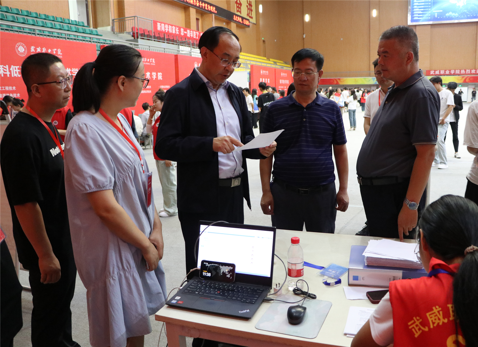 8月31日,是武威職業(yè)學(xué)院2024級(jí)新生報(bào)到第一天。校園里精心布置的迎新點(diǎn)和志愿者們親切熱情的笑臉,讓遠(yuǎn)道而來(lái)的2024級(jí)新生及家長(zhǎng)感到陣陣溫暖。上午9點(diǎn),學(xué)校黨委書(shū)記王宏,黨委副書(shū)記、校長(zhǎng)張開(kāi)禮,黨委委員、副校長(zhǎng)王守云到學(xué)校體育館迎新現(xiàn)場(chǎng)走訪慰問(wèn),并與現(xiàn)場(chǎng)新生、家長(zhǎng)及師生志愿者親切交流。