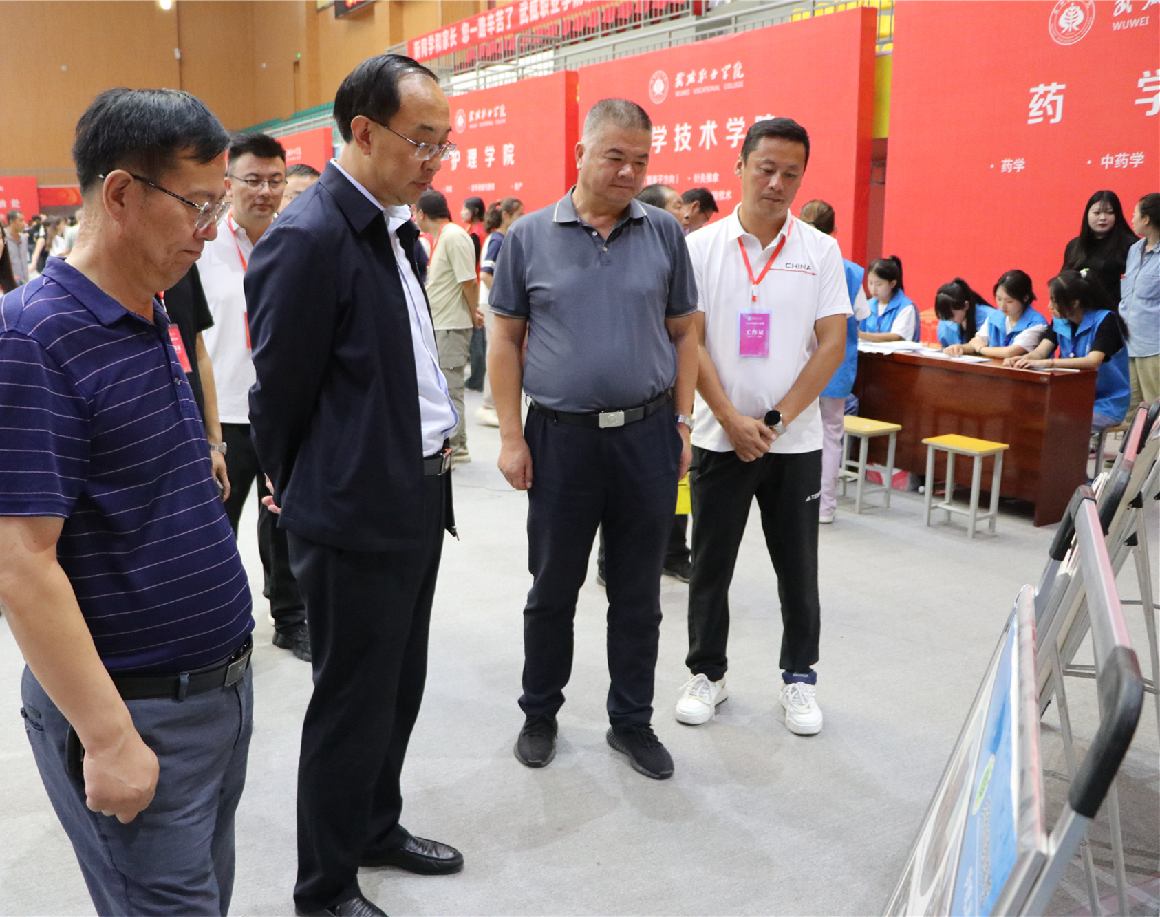 校領(lǐng)導(dǎo)一一走過(guò)新生報(bào)到處、綠色通道、繳費(fèi)處和各二級(jí)學(xué)院迎新報(bào)到點(diǎn),了解新生報(bào)到情況,仔細(xì)詢問(wèn)智慧學(xué)工平臺(tái)使用情況,親切問(wèn)候堅(jiān)守崗位的師生志愿者。在醫(yī)學(xué)技術(shù)學(xué)院報(bào)到點(diǎn)前,王宏與2024級(jí)放射治療技術(shù)(重離子方向)新生及家長(zhǎng)聊了起來(lái)——“歡迎你們來(lái)到武威職業(yè)學(xué)院學(xué)習(xí)!為什么會(huì)報(bào)考這個(gè)專(zhuān)業(yè)?”在得知學(xué)生家庭中有人從事重離子醫(yī)療領(lǐng)域的研發(fā)工作時(shí),王宏勉勵(lì)新生要努力學(xué)好專(zhuān)業(yè)、練好技能,爭(zhēng)做高素質(zhì)技術(shù)技能人才。在家長(zhǎng)休息區(qū),王宏與來(lái)自甘肅慶陽(yáng)的新生家長(zhǎng)親切交談,并介紹了學(xué)校的辦學(xué)情況,建議學(xué)生和家長(zhǎng)在校園里走一走看一看,多了解熟悉學(xué)校,幫助學(xué)生盡快適應(yīng)大學(xué)生活,并祝愿學(xué)生家長(zhǎng)在武期間,一切順利。