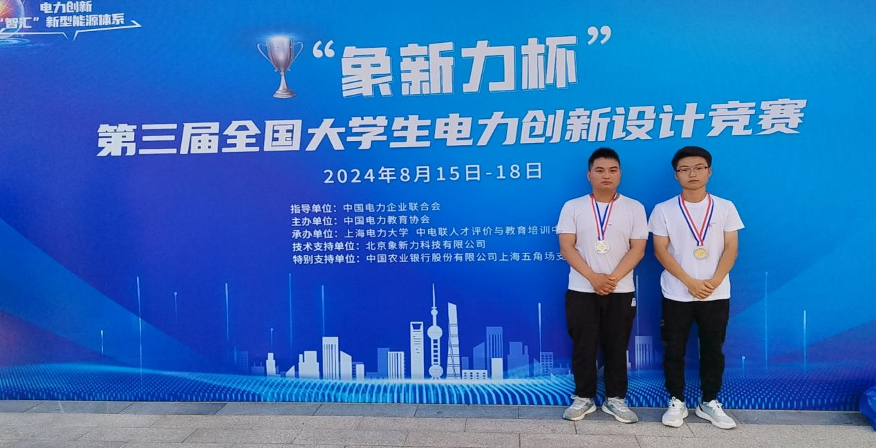 8月15-18日,“象新力杯”第三屆全國大學(xué)生電力創(chuàng)新設(shè)計競賽總決賽在上海電力大學(xué)(臨港校區(qū))圓滿舉行。來自全國114所高校的289支團(tuán)隊共計1500余人共同參與,經(jīng)過線上線下,匯聚智慧、碰撞創(chuàng)意、交流成果、比拼才能,我校工程技術(shù)學(xué)院參賽的2名同學(xué)獲決賽二等獎。