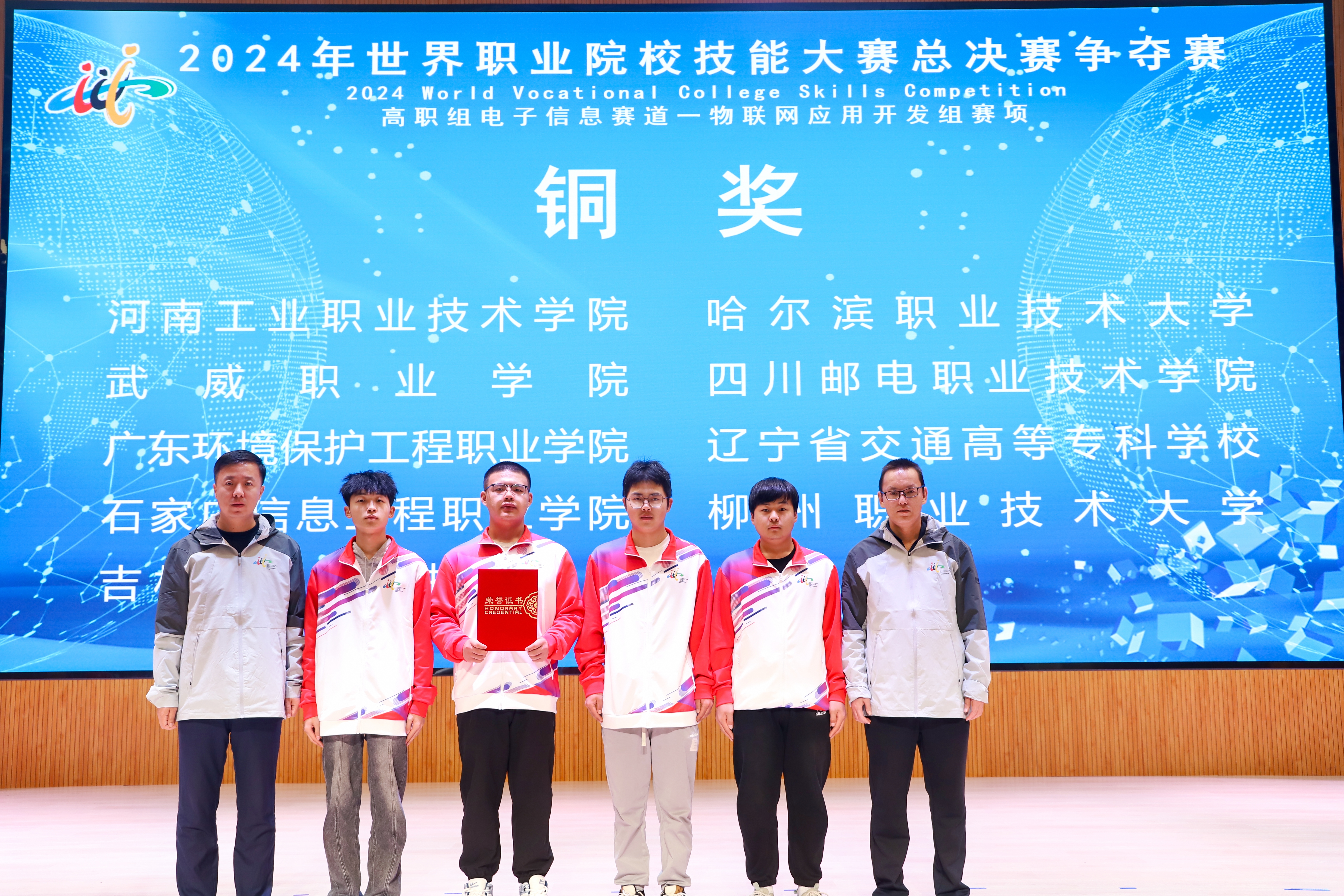 再傳喜訊∣學(xué)校在2024年世界職業(yè)院校技能大賽爭(zhēng)奪賽高職組電子信息賽道物聯(lián)網(wǎng)應(yīng)用開(kāi)發(fā)賽項(xiàng)中榮獲銅獎(jiǎng)