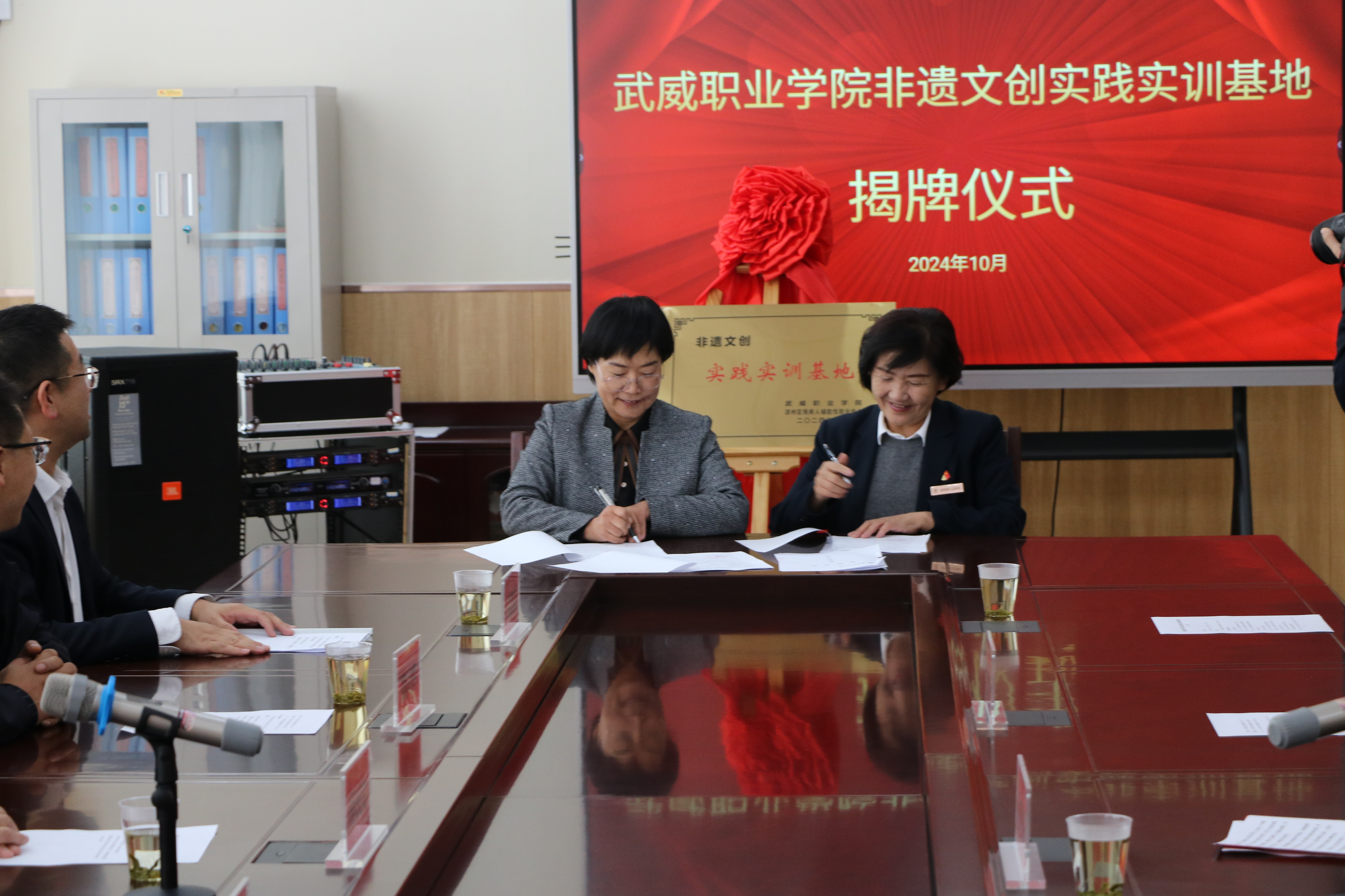 會上,武威市殘疾人聯(lián)合會副理事長柯長文,武威職業(yè)學院黨委委員、副校長何毅為“非遺文創(chuàng)實訓實踐基地”揭牌。