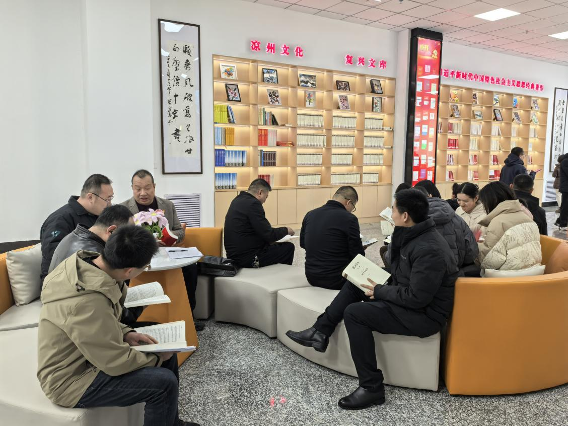 黨員們圍坐在書(shū)架旁,認(rèn)真閱讀關(guān)于習(xí)近平新時(shí)代中國(guó)特色社會(huì)主義思想書(shū)籍。書(shū)籍涵蓋了黨的創(chuàng)新理論、實(shí)踐探索、歷史經(jīng)驗(yàn)等多方面內(nèi)容。閱讀結(jié)束后,全體黨員在研討交流室集中觀看了視頻《中國(guó)共產(chǎn)黨人精神譜系》,并開(kāi)展了研討。
