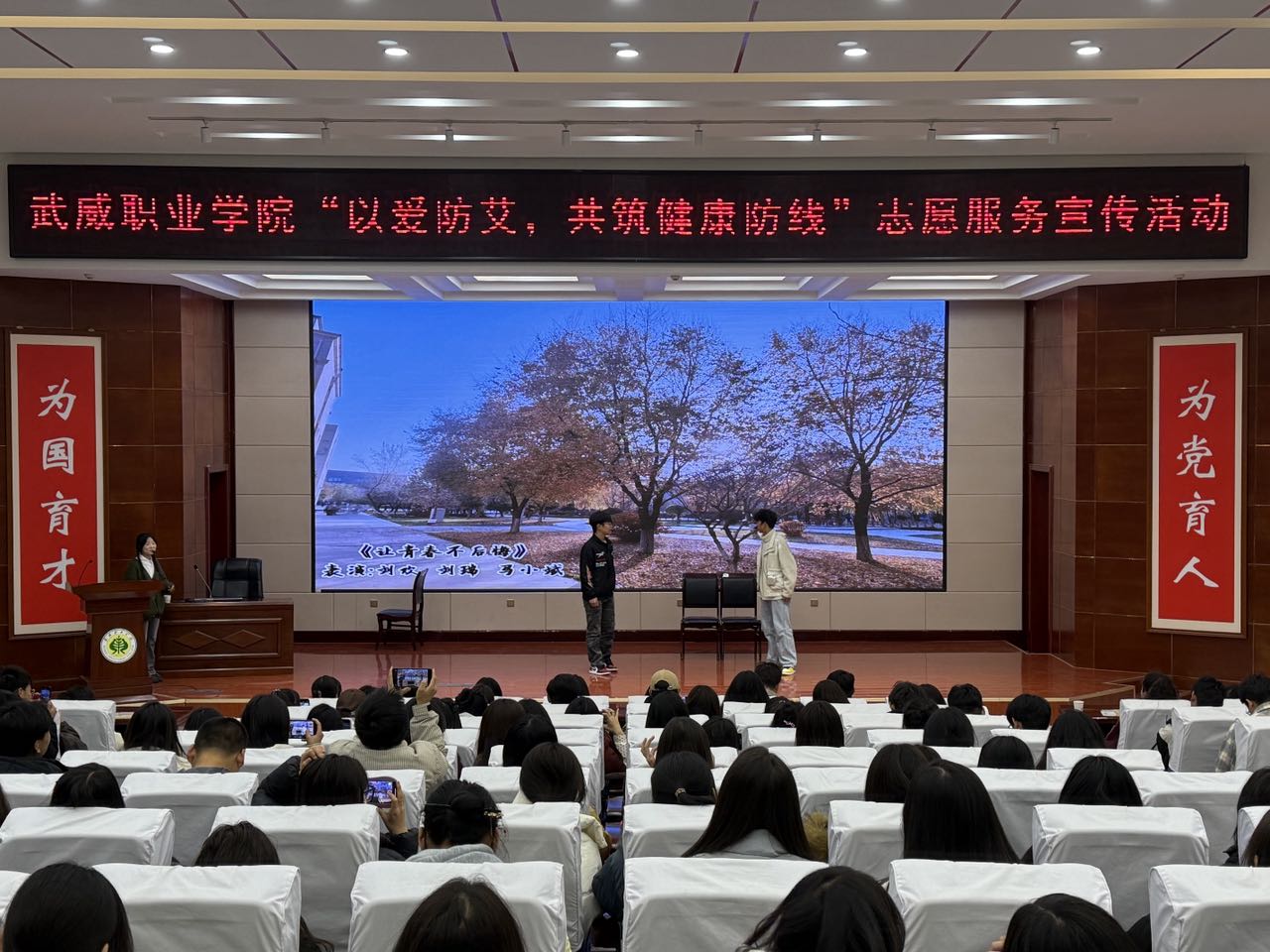 12月1日是第37個(gè)“世界艾滋病日”。為普及艾滋病防治知識(shí),進(jìn)一步增強(qiáng)廣大青年學(xué)子的自我防護(hù)意識(shí)與能力,促進(jìn)身心健康發(fā)展,12月1日下午,校團(tuán)委聯(lián)合護(hù)理學(xué)院邀請(qǐng)武威市疾控中心在學(xué)校菁英廳開(kāi)展主題為“以愛(ài)防艾,共筑健康防線”主題宣傳活動(dòng),吸引了200余名師生積極參與。