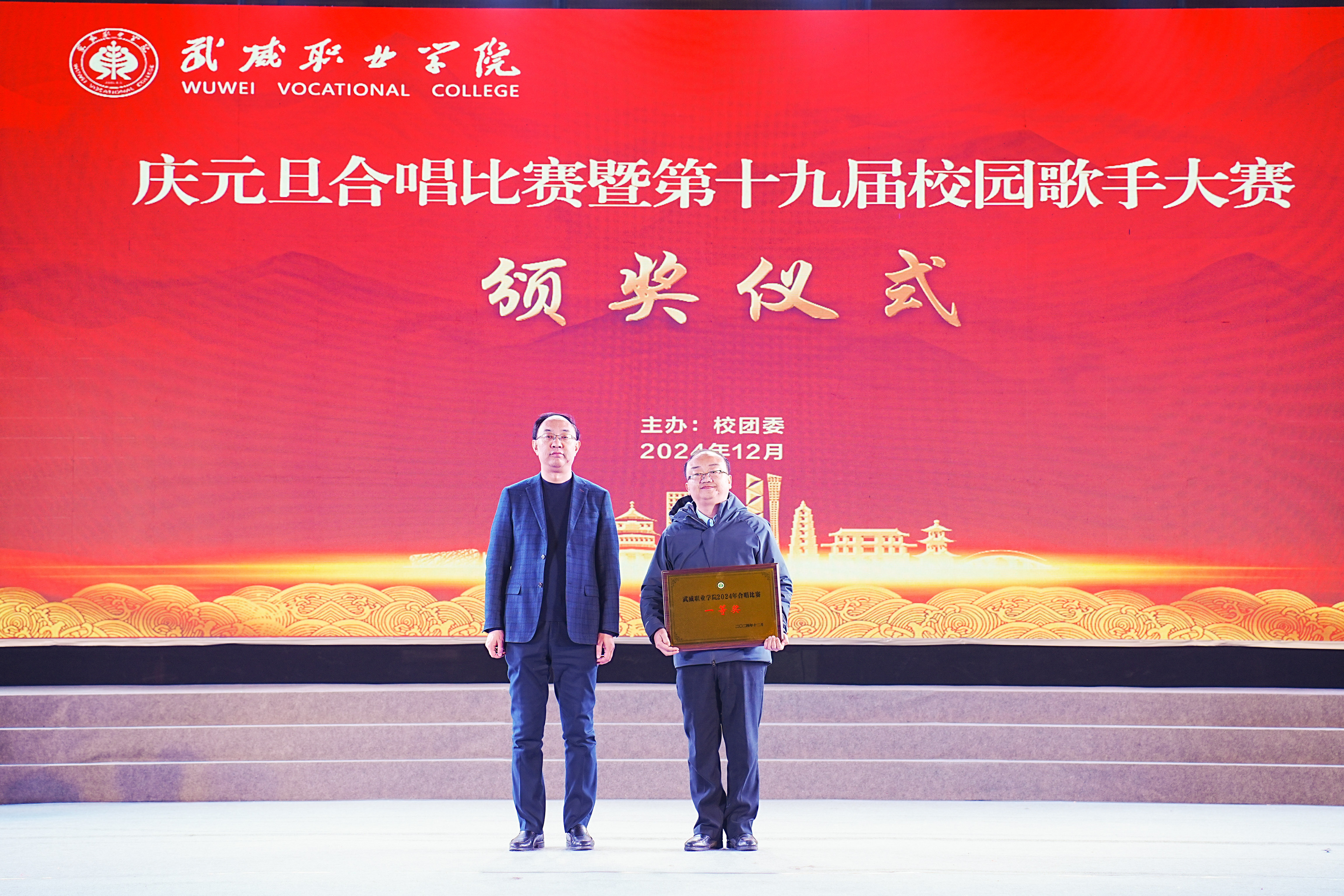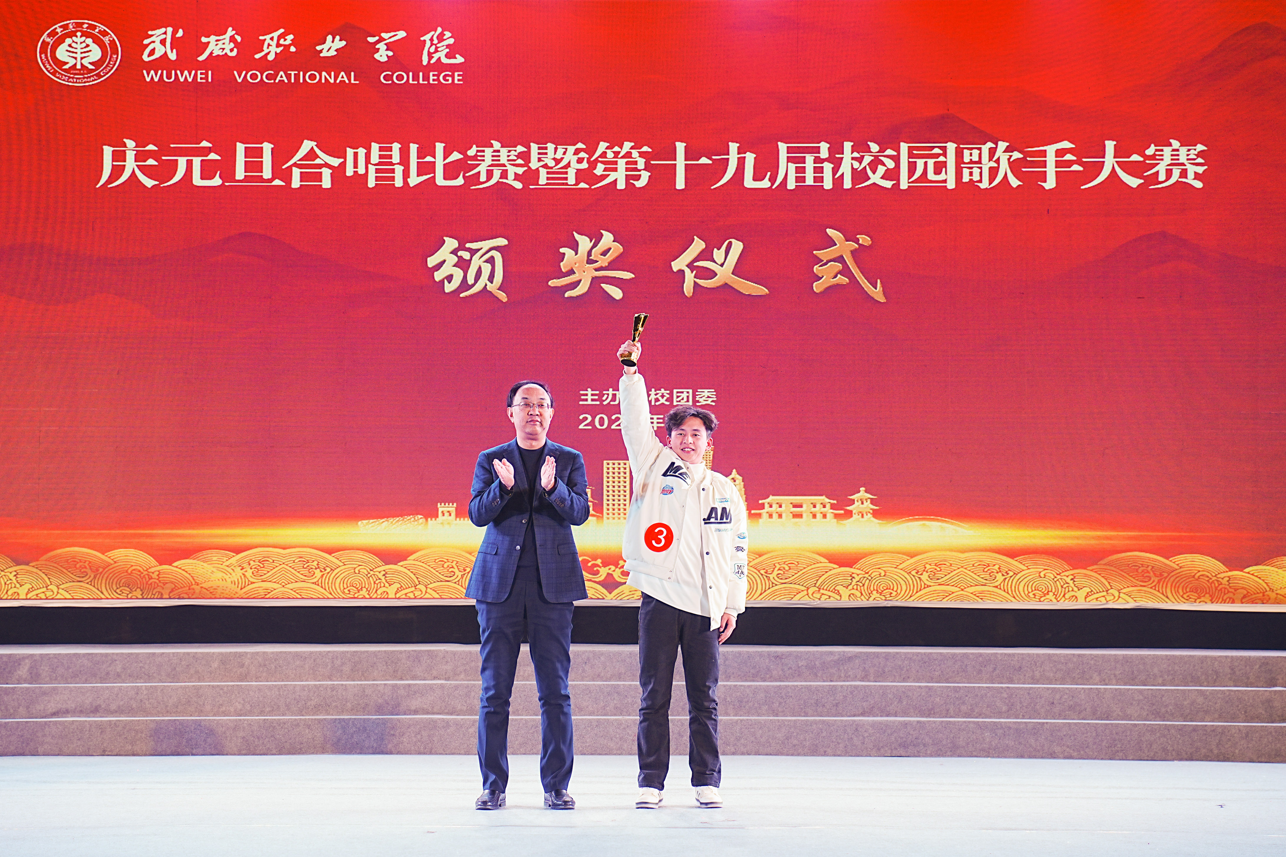 歌聲獻禮時代,青春唱響未來。12月26日晚,學?!皯c元旦”合唱比賽暨第十九屆校園歌手大賽在體育館成功舉辦。學校黨委書記王宏出席活動并為獲獎集體和個人頒獎,黨委委員、副校長王守云出席活動,各二級學院和相關(guān)部門負責人與2000余名師生現(xiàn)場觀看了比賽。