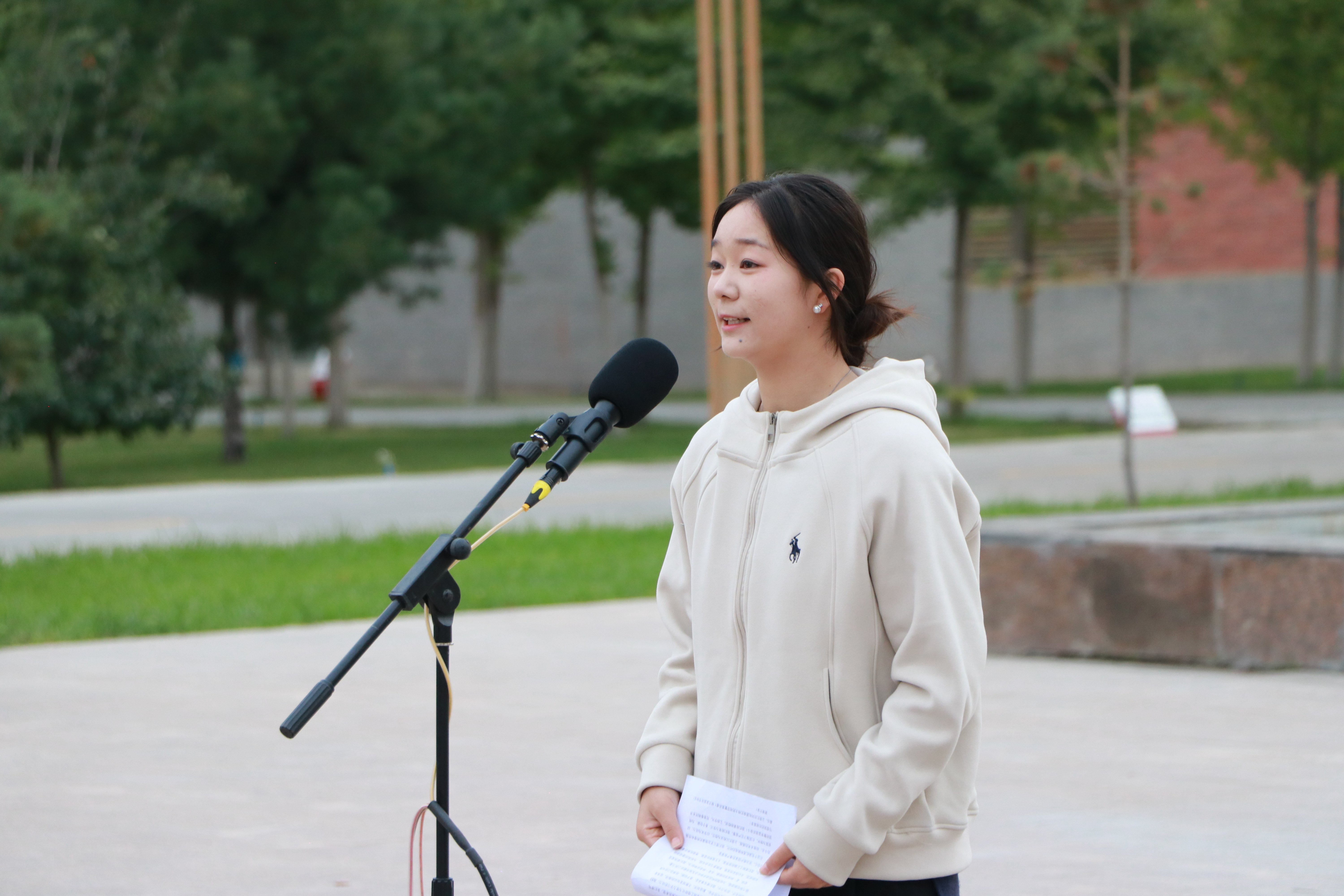 優(yōu)秀學(xué)生代表、藝術(shù)與教育學(xué)院2023級學(xué)前教育專業(yè)的馬青妍同學(xué)進行了國旗下的演講,她的演講激勵著在場的每一個人,表達了對祖國的熱愛和對未來的期許。