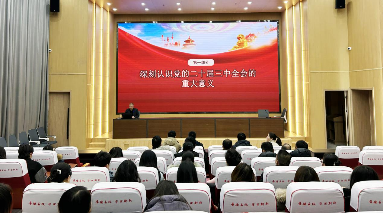 1月3日下午,黨委委員、副校長王守云在能源科技樓學(xué)術(shù)報告廳為經(jīng)濟(jì)管理學(xué)院、藝術(shù)與教育學(xué)院師生帶來了一場生動而有深度的專題黨課報告會,深入解讀黨的二十屆三中全會精神和習(xí)近平總書記視察甘肅重要講話重要指示精神。兩學(xué)院黨員、預(yù)備黨員、入黨積極分子、師生代表共100余人參加。