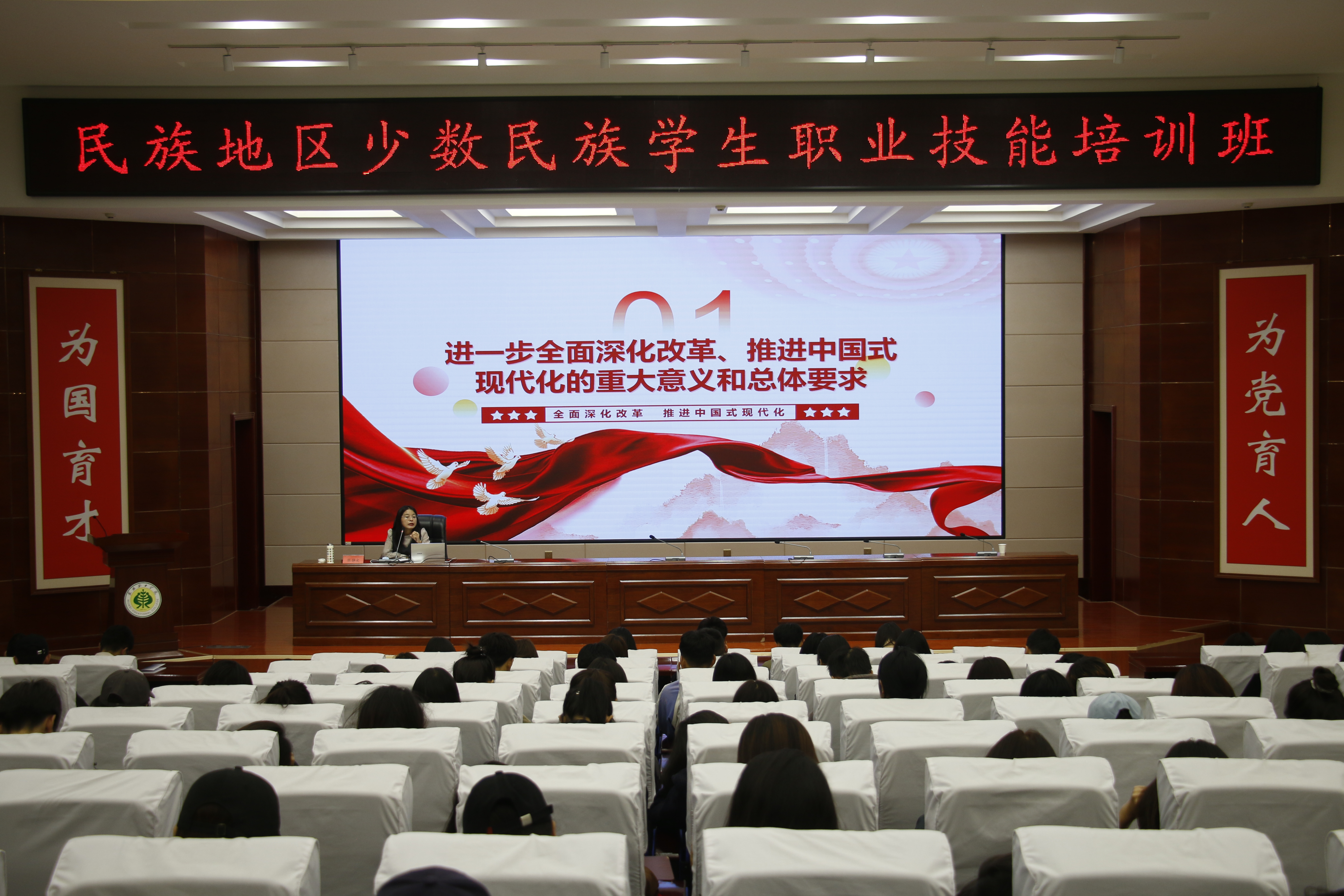 為推動(dòng)落實(shí)國家穩(wěn)崗就業(yè)政策部署,進(jìn)一步提升我校畢業(yè)生的綜合就業(yè)能力,9月27日,2024年全省“三項(xiàng)計(jì)劃”試點(diǎn)示范項(xiàng)目“民族地區(qū)少數(shù)民族學(xué)生職業(yè)技能培訓(xùn)班”在學(xué)校菁英廳順利開班。