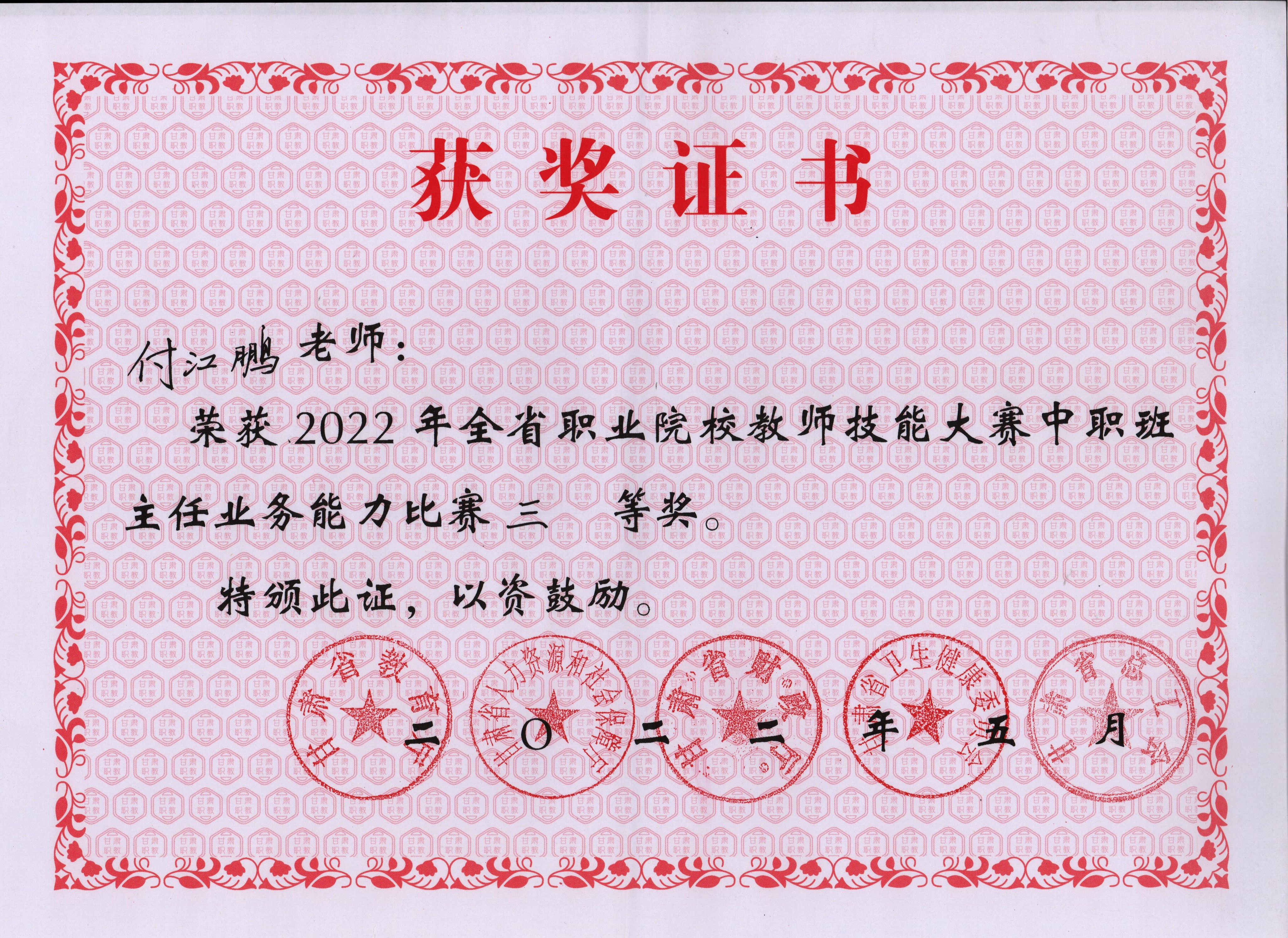付江鵬 | 2022年甘肅省職業(yè)院校技能大賽班主任能力比賽 | 省級 | 三點(diǎn) |