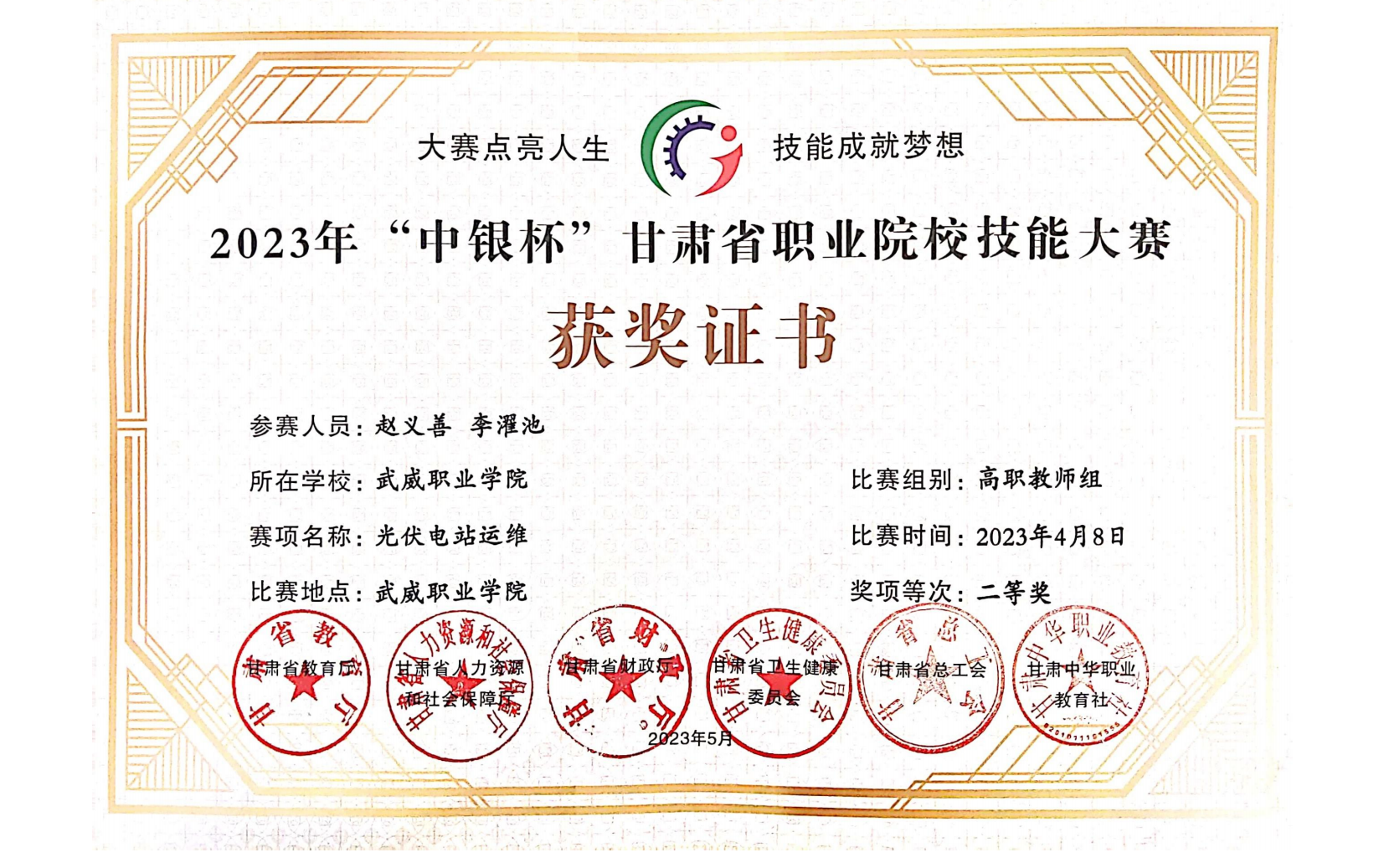 2023年甘肅省職業(yè)院校技能大賽光伏電站運(yùn)維賽項(xiàng)(高職教師組)獲獎(jiǎng)情況