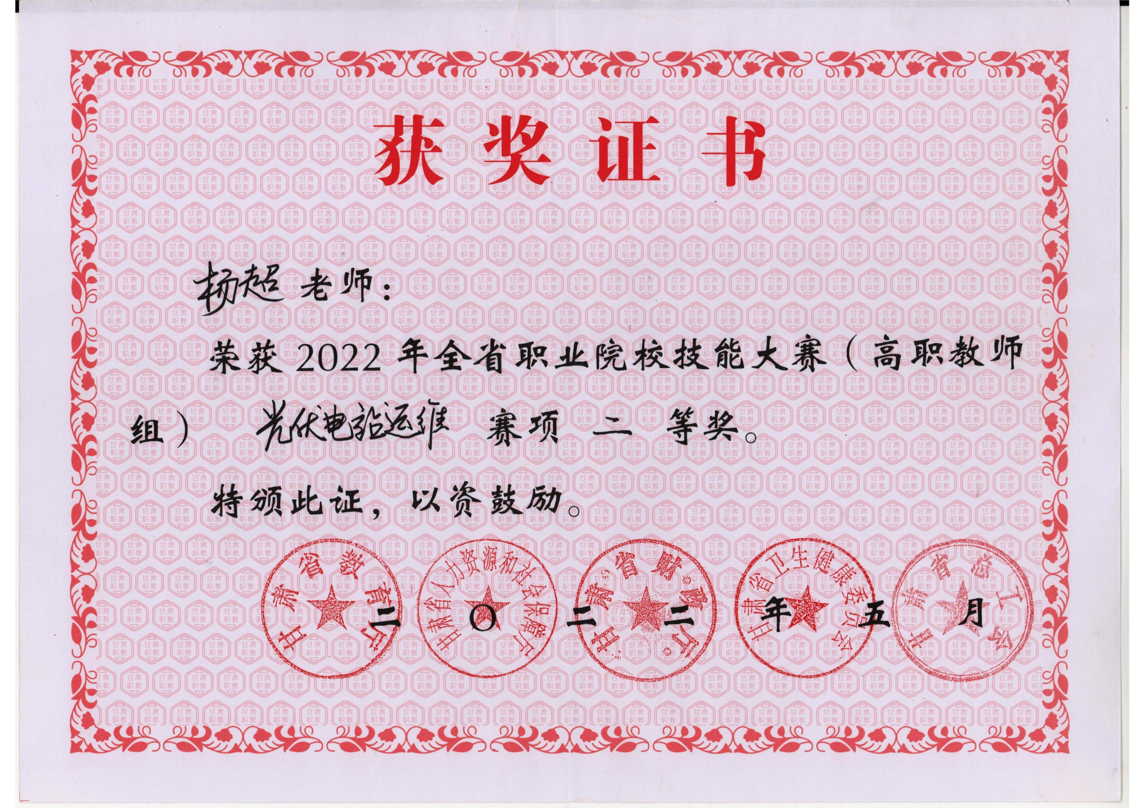 2022年甘肅省職業(yè)院校技能大賽光伏電站運(yùn)維賽項(xiàng)(高職教師組)獲獎(jiǎng)情況