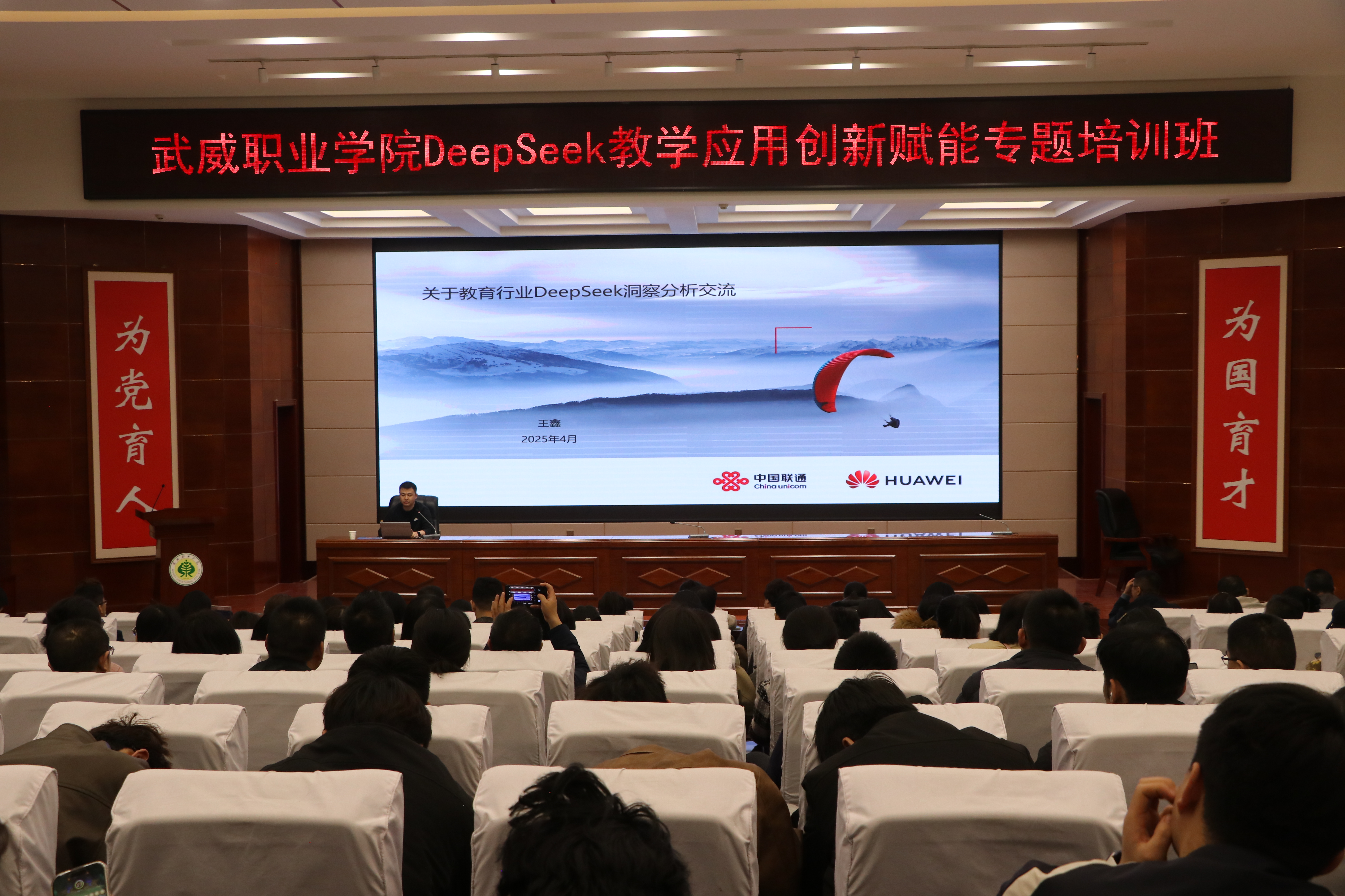 為深入探討DeepSeek技術(shù)的應(yīng)用,助力學校師生運用AI工具進行教學實踐、智慧課程建設(shè)與科學研究工作,為教學改革與教學創(chuàng)新實踐筑基賦能。4月3日,學校邀請聯(lián)通數(shù)據(jù)智能有限公司教育行業(yè)解決方案專家包紅梅和華為技術(shù)有限公司智算產(chǎn)業(yè)AI架構(gòu)師王鑫,舉辦了“DeepSeek教學應(yīng)用創(chuàng)新賦能”專題講座。講座由網(wǎng)絡(luò)安全與信息技術(shù)中心負責人史子新主持,學校各部門、二級學院教師代表,信息技術(shù)學院學生代表共計220人參加。