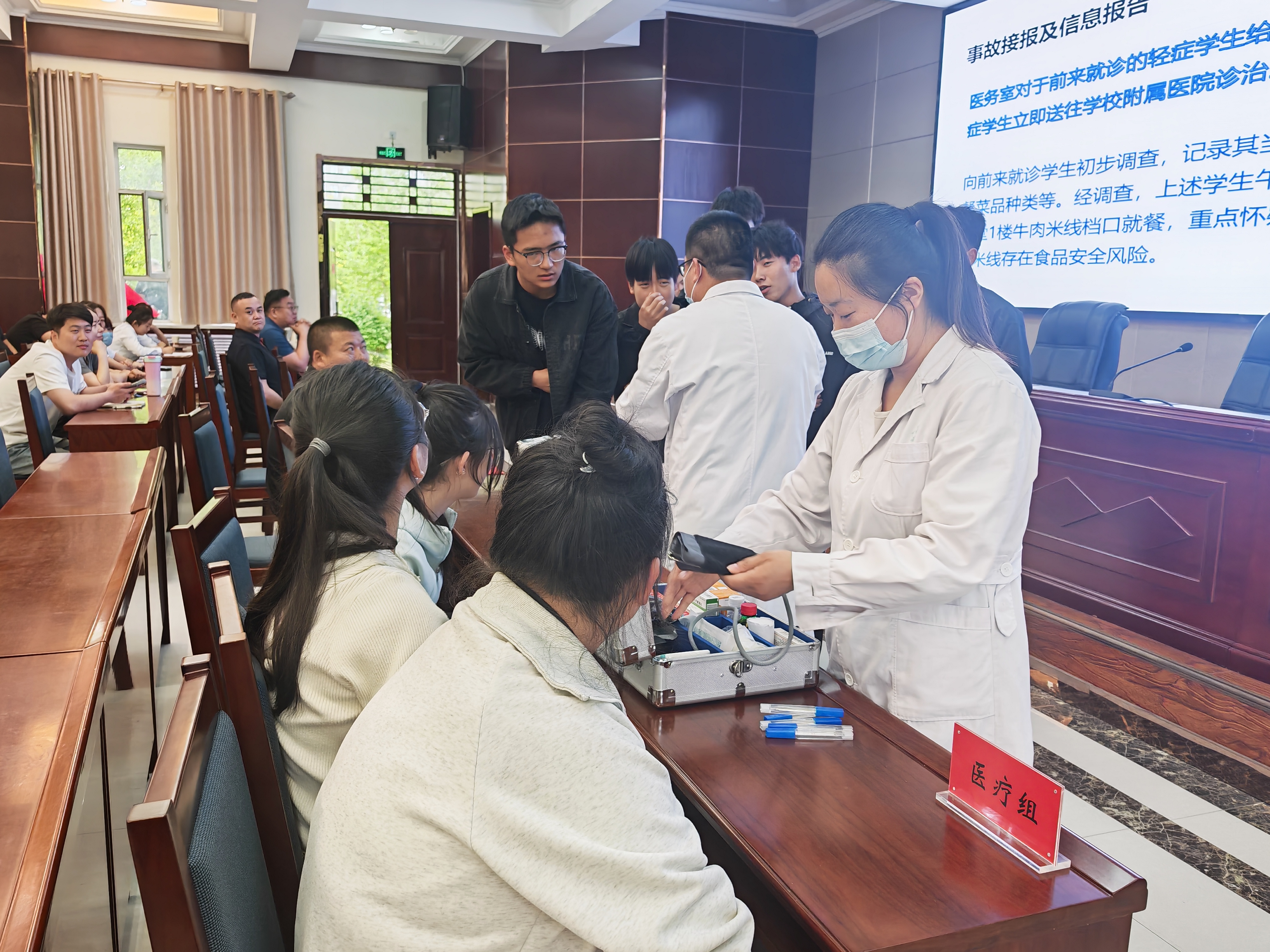 演練采取“事故模擬+場(chǎng)景切換+政策解讀”的方式,模擬醫(yī)學(xué)技術(shù)學(xué)院8名學(xué)生發(fā)生群體性食物中毒后,學(xué)校立即啟動(dòng)《食品安全事故應(yīng)急預(yù)案》進(jìn)行應(yīng)急處置的全過(guò)程。在事故模擬、組織先期處置、啟動(dòng)應(yīng)急響應(yīng)、配合參與現(xiàn)場(chǎng)應(yīng)急處置、輿情管控、應(yīng)急響應(yīng)終止、點(diǎn)評(píng)與總結(jié)七大場(chǎng)景的應(yīng)急處置過(guò)程中,融合了學(xué)生救治與心理疏導(dǎo)、快速響應(yīng)與報(bào)告、現(xiàn)場(chǎng)與證據(jù)保護(hù)、配合調(diào)查與檢測(cè)、輿情監(jiān)測(cè)與應(yīng)對(duì)、善后處置等要素,體現(xiàn)了校內(nèi)快速聯(lián)動(dòng)、校外有序協(xié)同的特點(diǎn)。