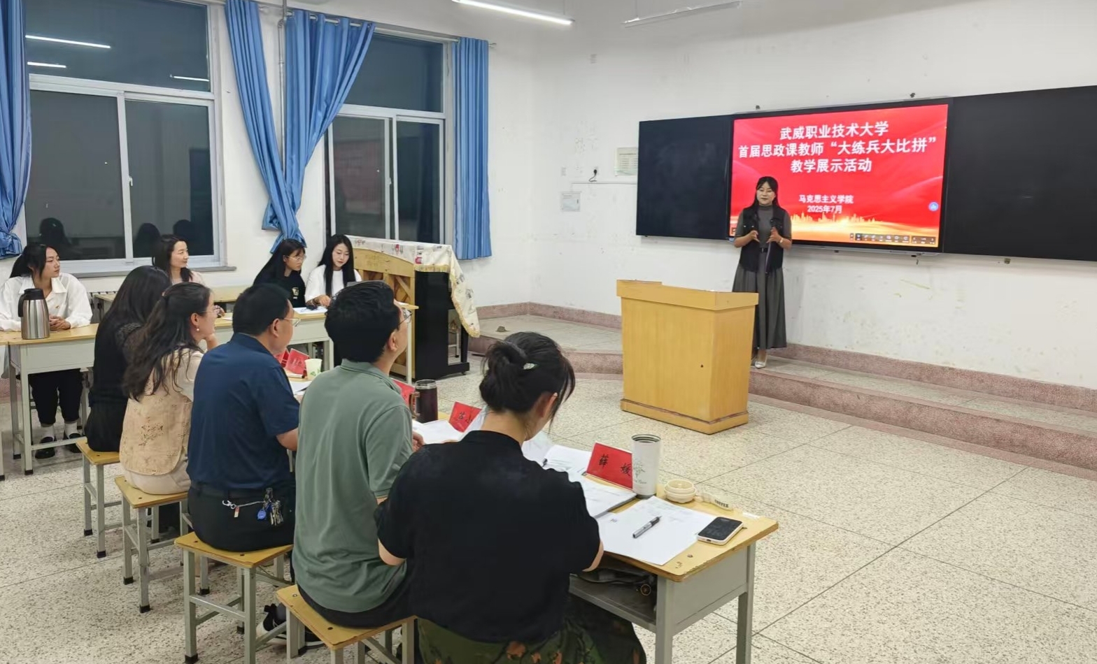 7月3日,武威職業(yè)技術大學首屆思政課教師“大練兵大比拼”教學展示活動在勵勤樓206教室成功舉辦?;顒又荚谕苿有聲r代思想政治理論課高質(zhì)量發(fā)展,提升思政課教師教學水平,打造高素質(zhì)思政課教師隊伍。