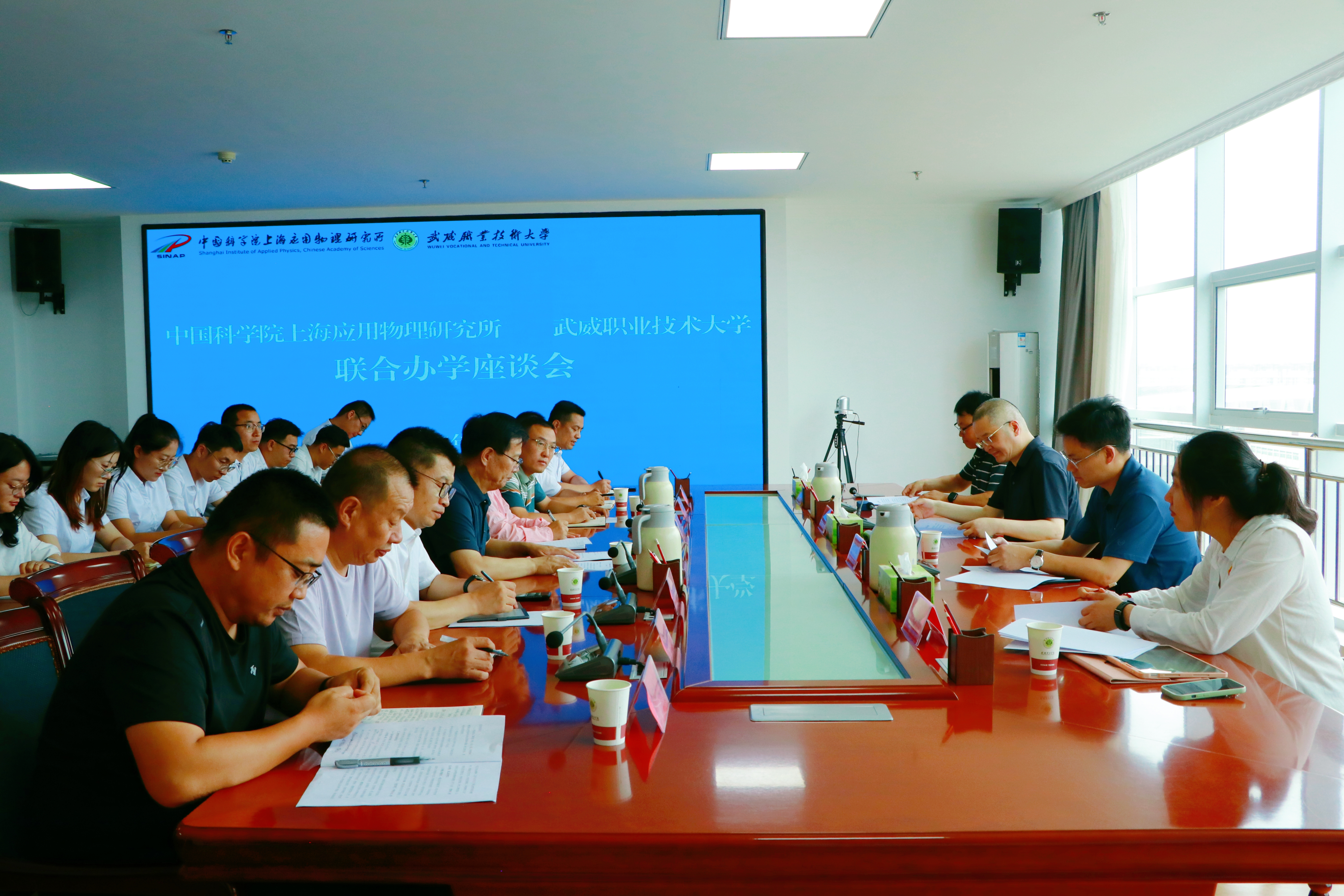 武威職業(yè)技術(shù)大學(xué)相關(guān)部門及學(xué)院負(fù)責(zé)同志,中科低碳新能源技術(shù)學(xué)院教師代表參加座談會(huì)。