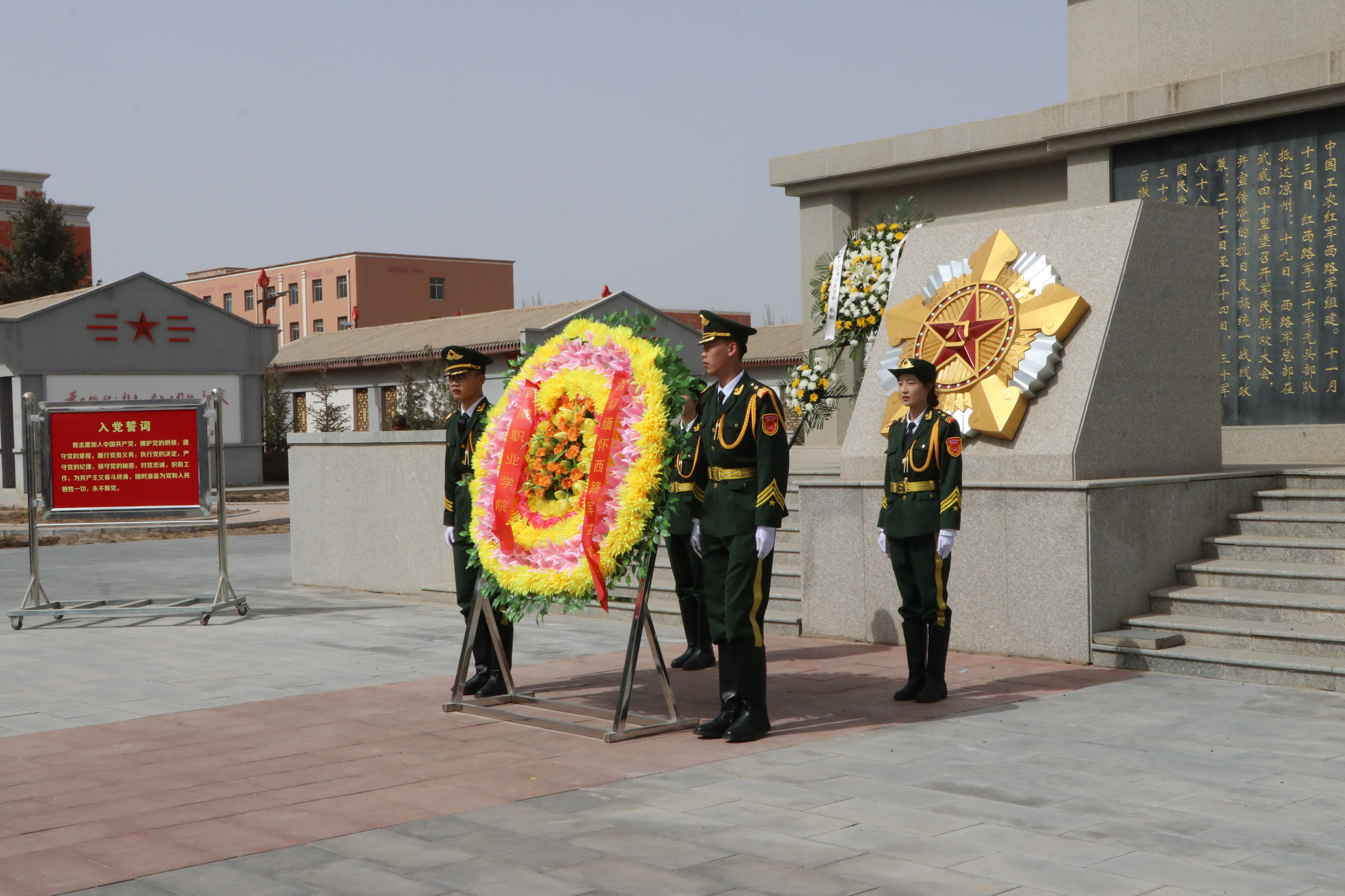 活動當(dāng)天,同學(xué)們莊嚴(yán)肅立于烈士紀(jì)念碑前,通過敬獻(xiàn)花圈、集體默哀、黨員重溫入黨誓詞等方式寄托哀思。緬懷儀式結(jié)束后,在講解員帶領(lǐng)下,大家有序參觀涼州戰(zhàn)役紀(jì)念館,透過珍貴的歷史文物、生動的影像資料和震撼的場景復(fù)原,深刻感悟革命先烈革命理想高于天的堅(jiān)定信仰和為有犧牲多壯志的英雄氣概。