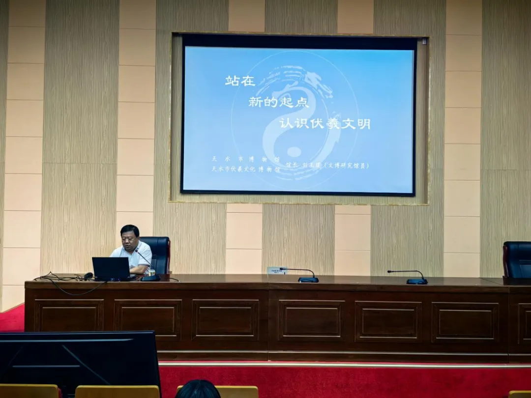 講座中,劉玉璞以習近平總書記考察天水伏羲廟的重要講話為切入點,圍繞“中華文明起源”“鑄牢中華民族共同體意識”“實現(xiàn)中華民族偉大復興”三大維度展開,系統(tǒng)梳理了伏羲文化研究的最新成果,指出伏羲文明是中華文明的重要源頭,其文化符號深刻體現(xiàn)了中華民族早期先民的宇宙觀與價值觀。通過考古發(fā)現(xiàn)與文獻互證,他闡釋了伏羲文化在推動多民族融合、促進文化認同中的歷史作用,并強調(diào)伏羲文化在當代的價值不僅在于學術(shù)研究,更需轉(zhuǎn)化為增強民族文化自信、服務(wù)社會發(fā)展的精神動力。這場講座以生動的語言和詳實的例證,為聽眾勾勒出一部從史前文明到當代傳承的伏羲文化發(fā)展史,現(xiàn)場反響熱烈。
