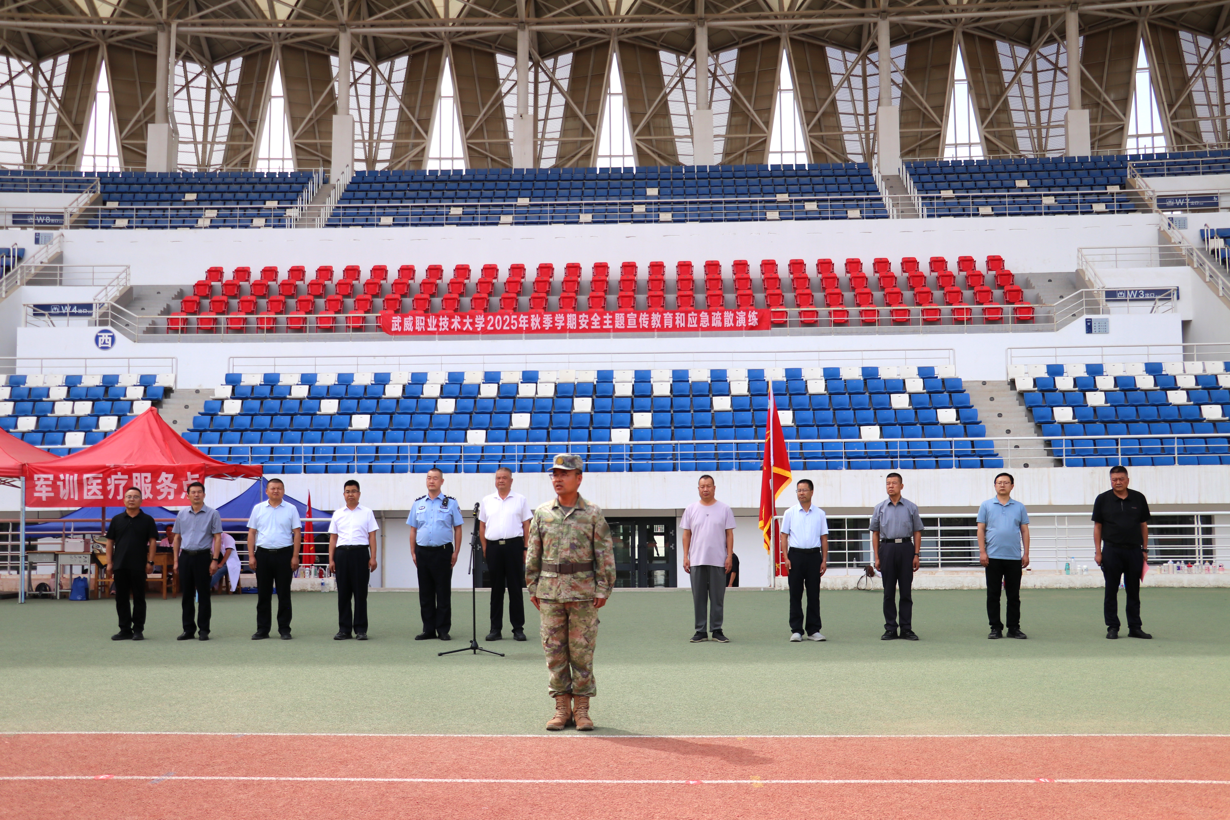 9月10日,學校舉行2025年秋季學期安全主題集中宣傳教育和應急疏散暨滅火演練活動,學校新進教師,食堂、鍋爐房、實驗實訓室等重點崗位管理人員,2025級全體學生共5000余人參加演練。學校黨委委員、副校長王守云,軍訓教官,武威市公安局相關部門同志,各學院、各部門負責人現(xiàn)場觀摩演練。演練活動由安全保衛(wèi)處處長李欣主持。