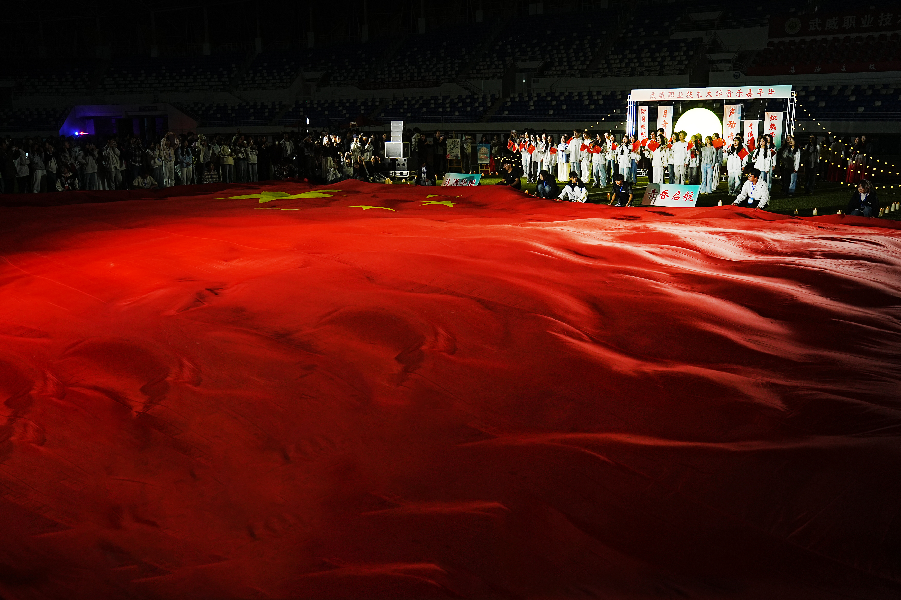 活動(dòng)尾聲,在深情的旋律中,演職人員與觀眾齊聲合唱《如愿》,深切表達(dá)對(duì)國泰民安的美好祝愿。巨幅國旗在師生手中緩緩傳遞、飄揚(yáng)舞動(dòng),匯成一片莊嚴(yán)而溫暖的紅色海洋,將現(xiàn)場(chǎng)氛圍推向最高潮,展現(xiàn)出青年一代與時(shí)代同頻、與祖國同行的堅(jiān)定信念。