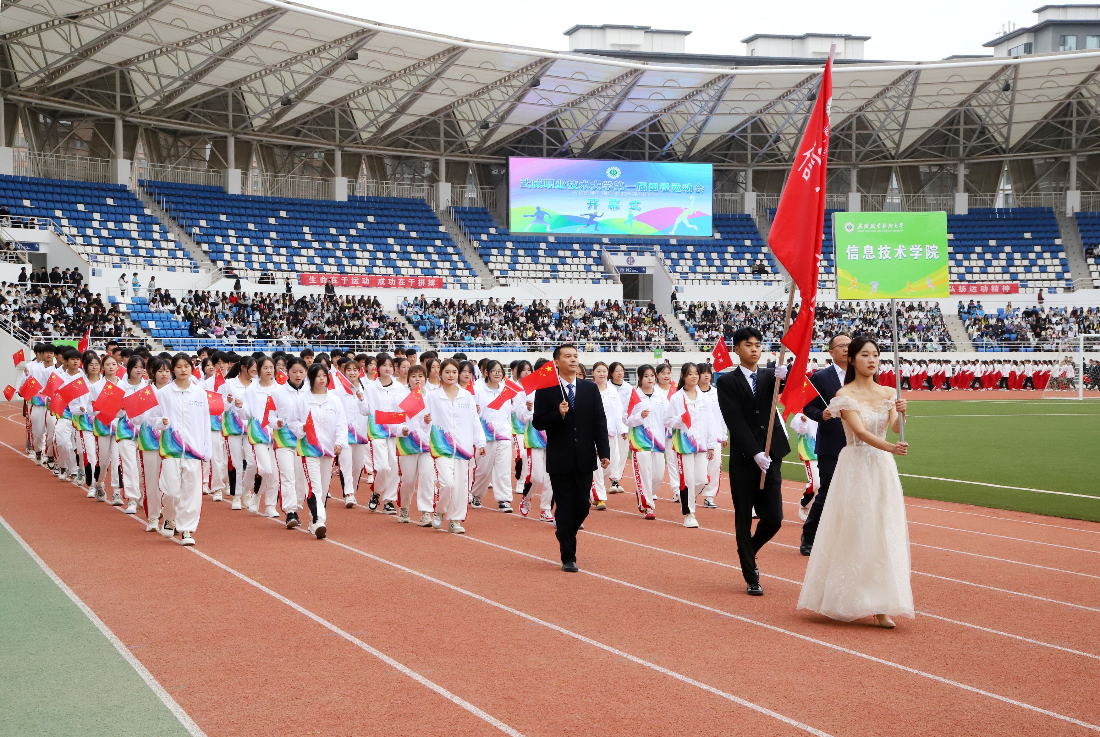 金秋的校園,青春逐夢,活力飛揚。9月28日—30日,武威職業(yè)技術大學第一屆田徑運動會在體育場隆重舉行。學校黨委書記王宏,校長李海軍,黨委委員、副校長王守云、伍國強及學校各部門、學院負責同志出席開幕式。王守云主持開幕式。