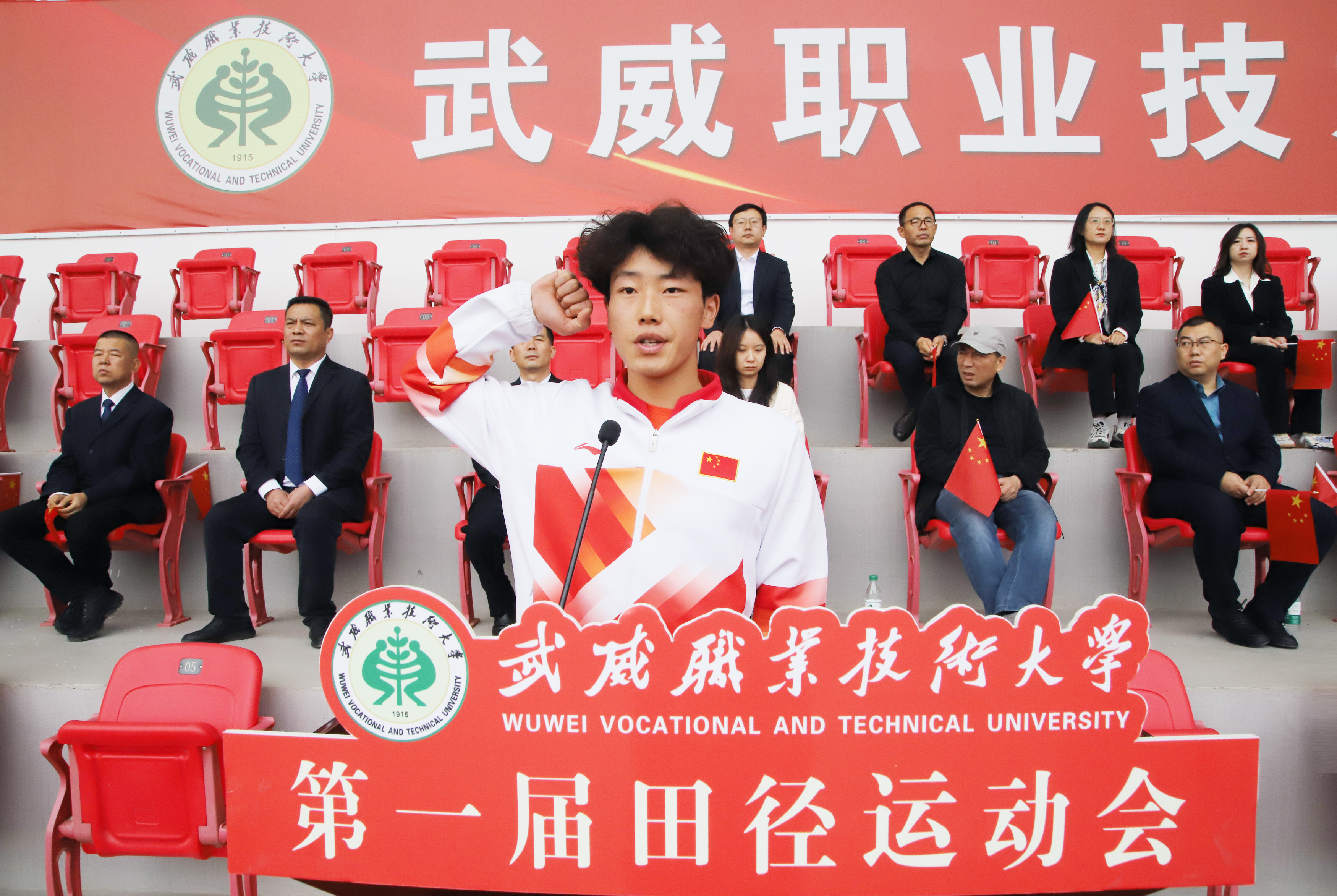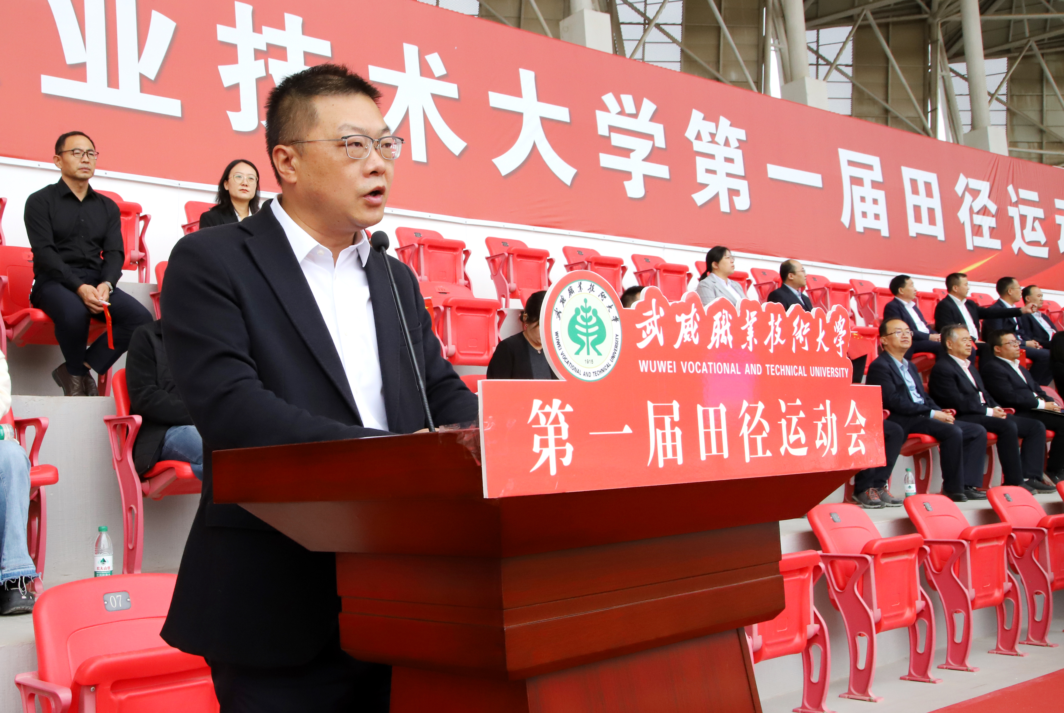 王宏宣布武威職業(yè)技術大學第一屆田徑運動會開幕。
