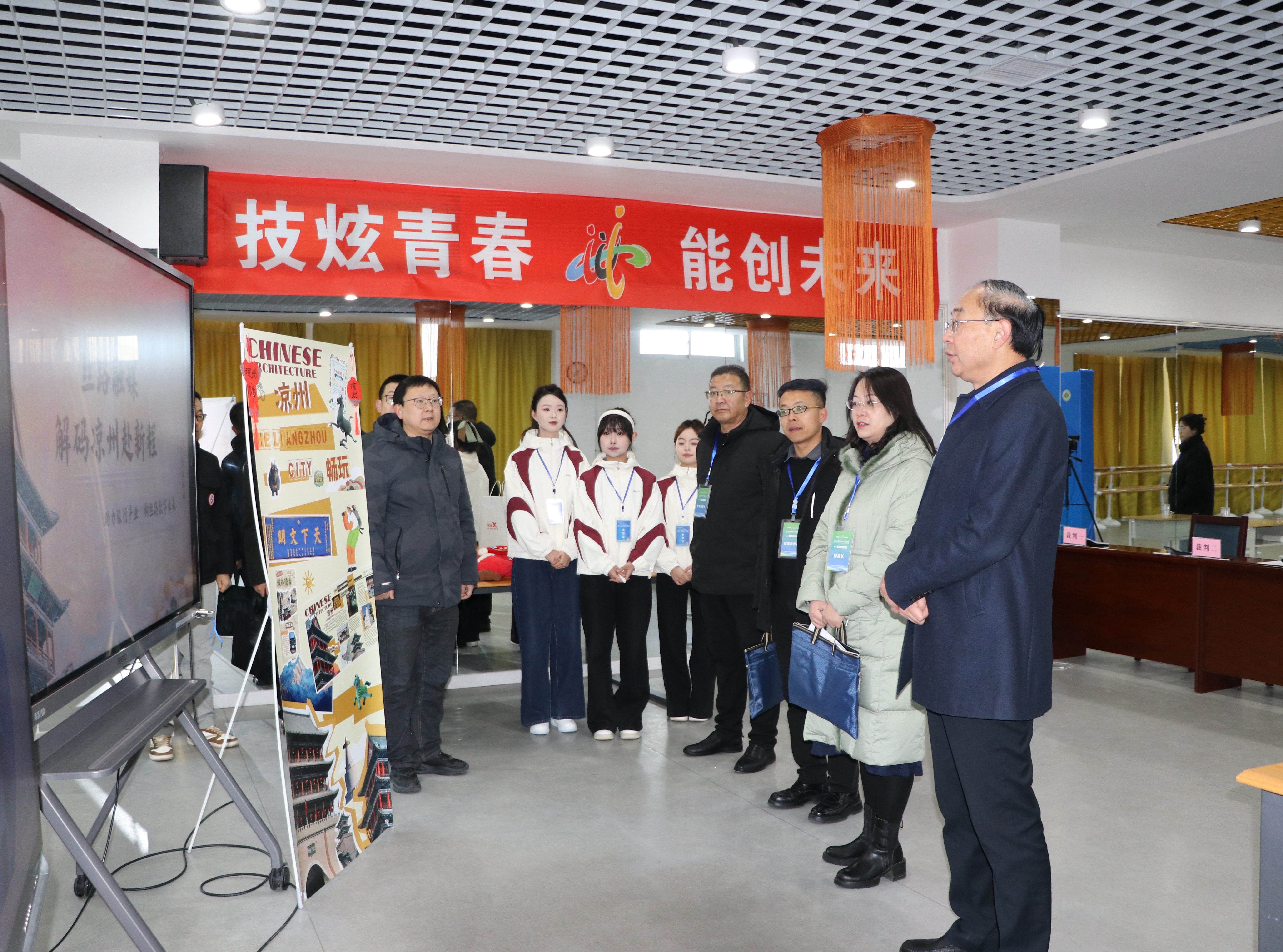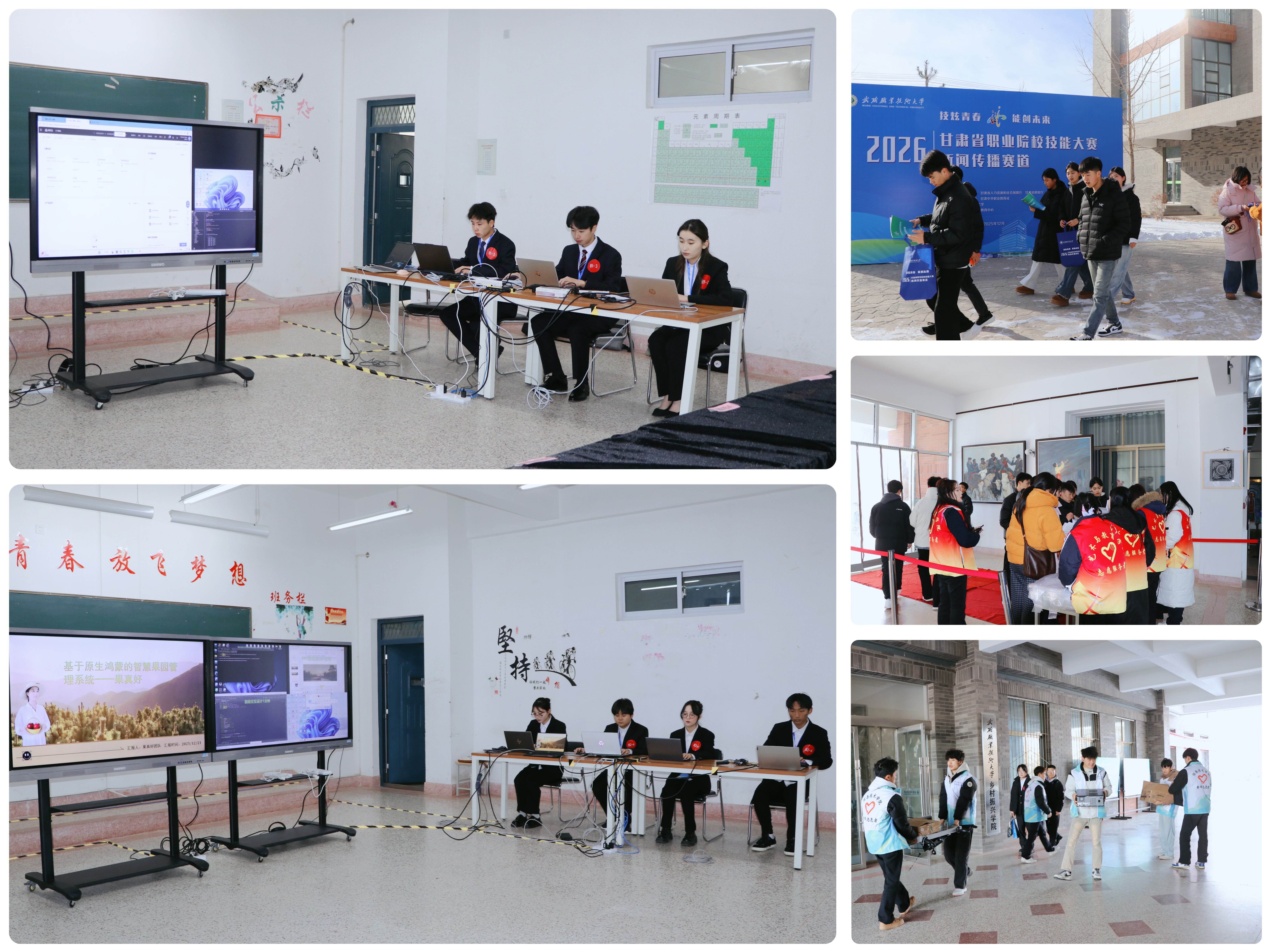 12月21日,學(xué)校黨委書記王宏帶隊深入學(xué)校承辦的甘肅省2026年職業(yè)院校技能大賽比賽現(xiàn)場,實地巡查高職組新聞傳播賽道、新一代信息技術(shù)賽道的比賽情況。賽點監(jiān)督仲裁組組長汪霞、成員王立榮、陳曉煜,學(xué)校教務(wù)處負責(zé)同志一同巡查。