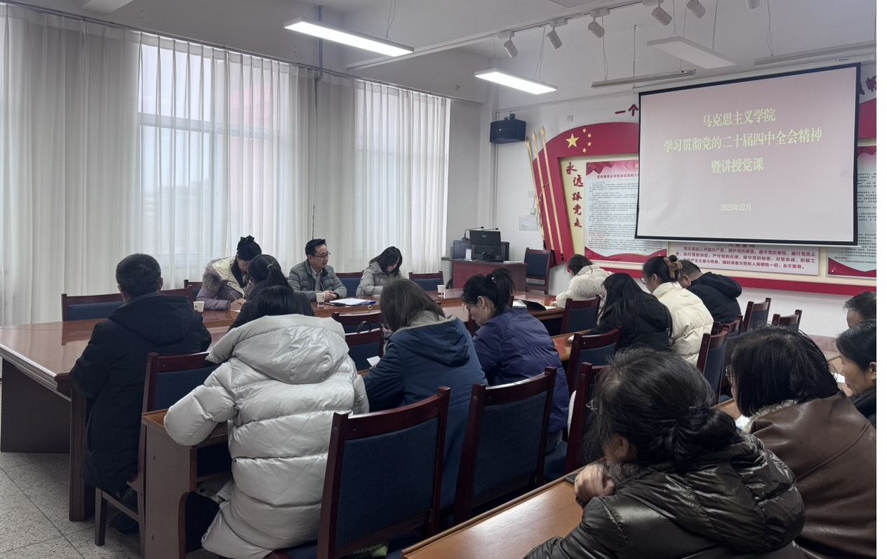 為推動黨的二十屆四中全會精神在學(xué)院落地生根,進一步統(tǒng)一思想、凝聚共識、激發(fā)干勁,12月31日,馬克思主義學(xué)院開展深入學(xué)習(xí)貫徹黨的二十屆四中全會精神專題學(xué)習(xí)活動,學(xué)院黨總支書記任陶在勵勤樓209會議室講授專題黨課,全體教師參加。
