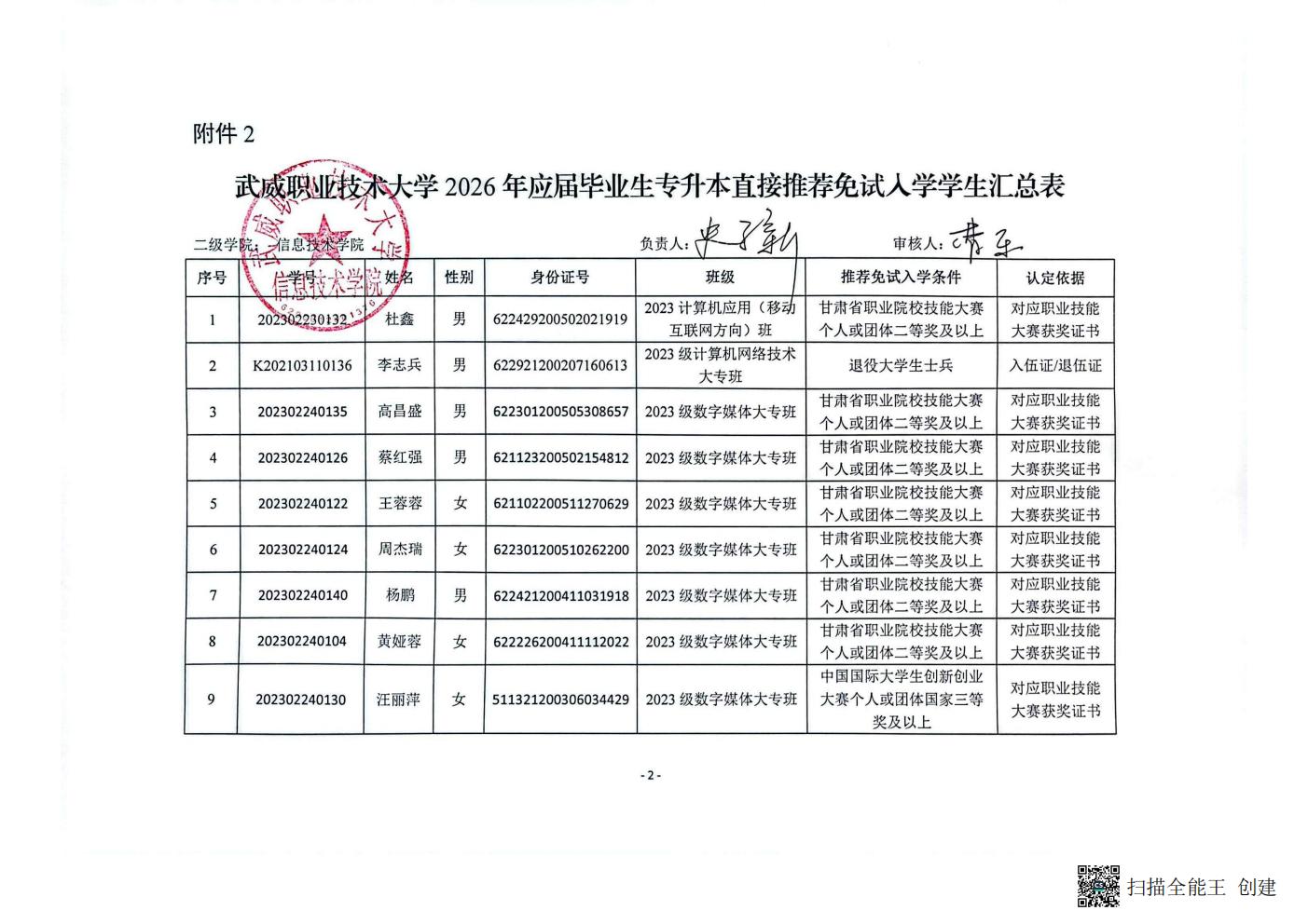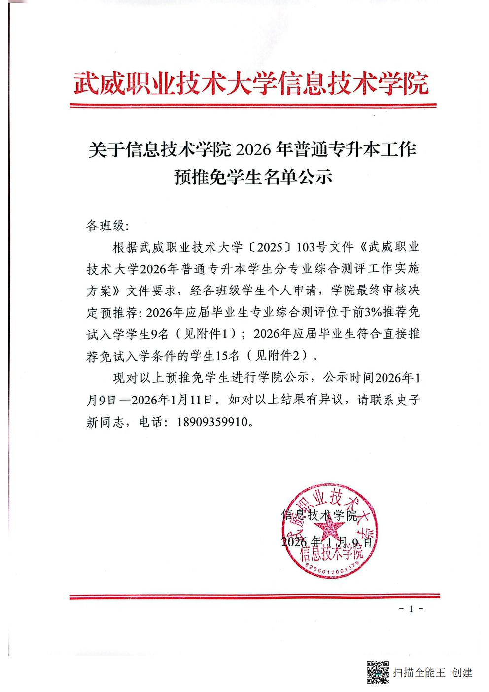 關(guān)于信息技術(shù)學院2026年普通專升本工作預推免學生名單公示