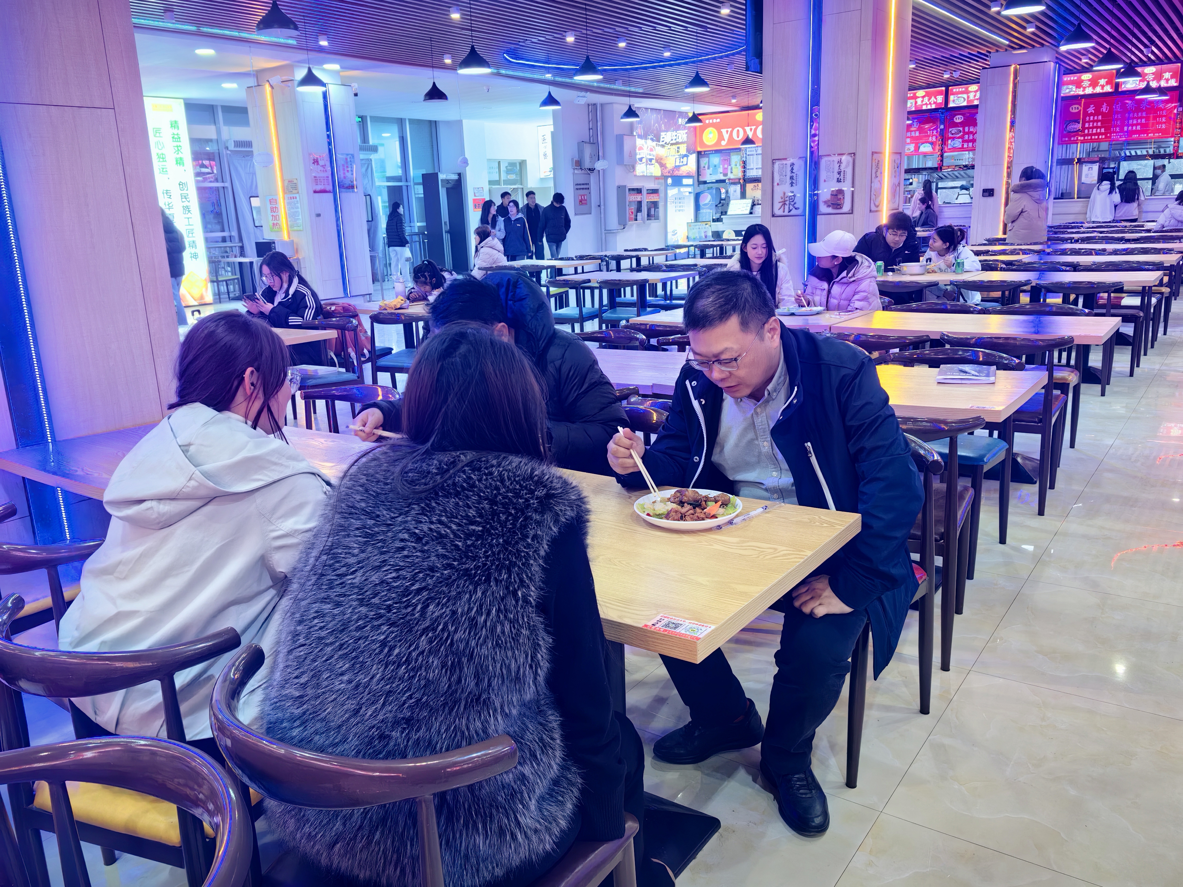 用餐時,李海軍校長與同學(xué)們圍坐一桌、親切攀談,細(xì)致詢問大家對菜品口味、分量、種類的意見和建議,耐心傾聽同學(xué)們在學(xué)習(xí)生活、校園服務(wù)等方面的需求與想法,同時鼓勵同學(xué)們珍惜糧食、踐行“光盤行動”,養(yǎng)成健康文明的飲食習(xí)慣。同學(xué)們卸下拘謹(jǐn)、踴躍發(fā)言,現(xiàn)場氛圍輕松融洽,一頓溫馨的午餐不僅拉近了師生距離,更讓校園充滿了暖心暖意。