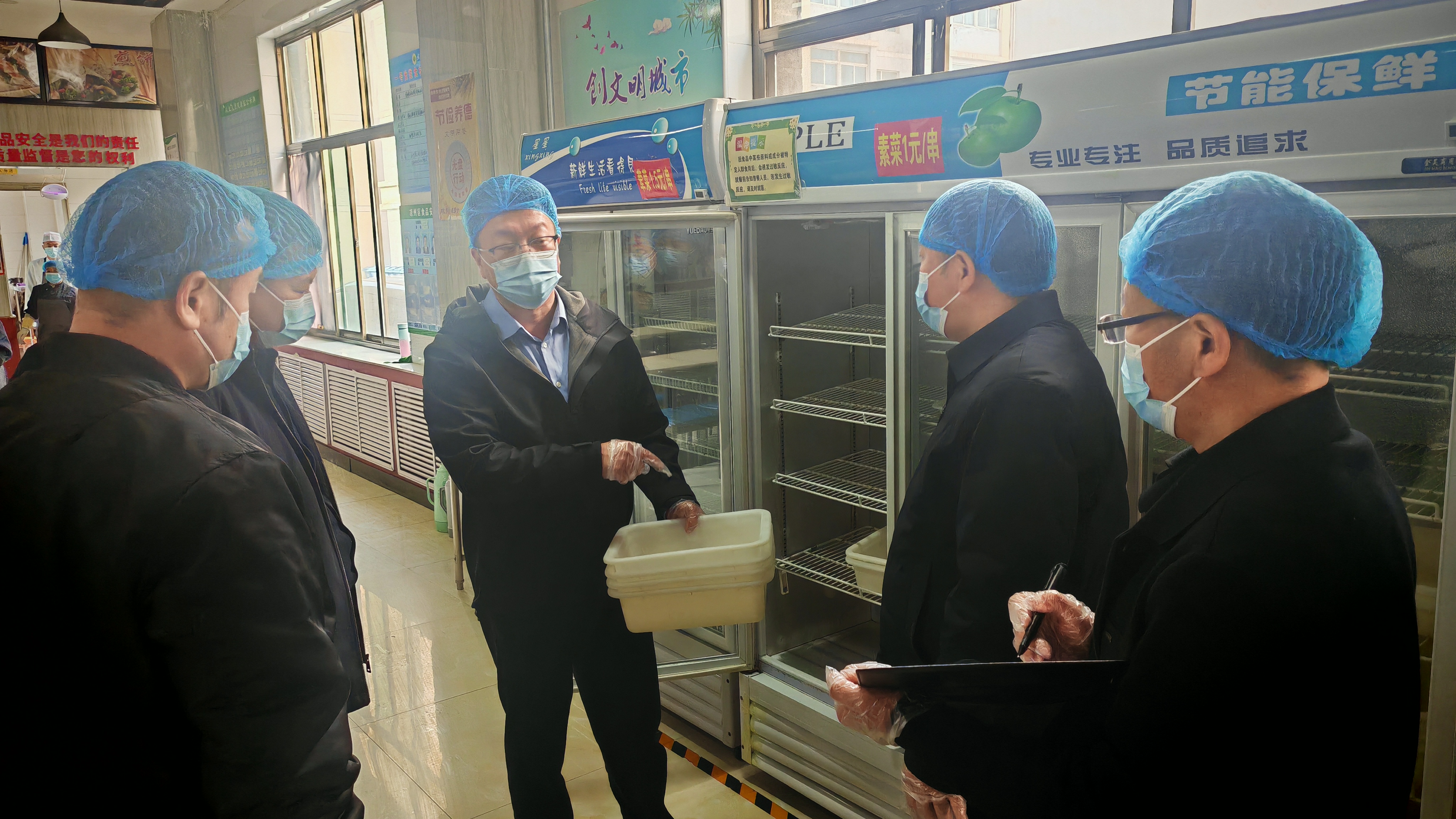 隨后,劉楠深入學(xué)校食堂后廚、食材倉庫、備餐間、洗消區(qū)域等重點場所,實地查看食品加工流程、環(huán)境衛(wèi)生、設(shè)施設(shè)備運行及臺賬記錄情況,對現(xiàn)場發(fā)現(xiàn)的問題逐一進行指導(dǎo)糾正,提出具體整改意見和優(yōu)化建議,為學(xué)校提升食品安全管理水平提供了有力專業(yè)支撐。