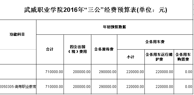武威職業(yè)學(xué)院2016年部門預(yù)算和“三公”經(jīng)費(fèi)預(yù)算公開