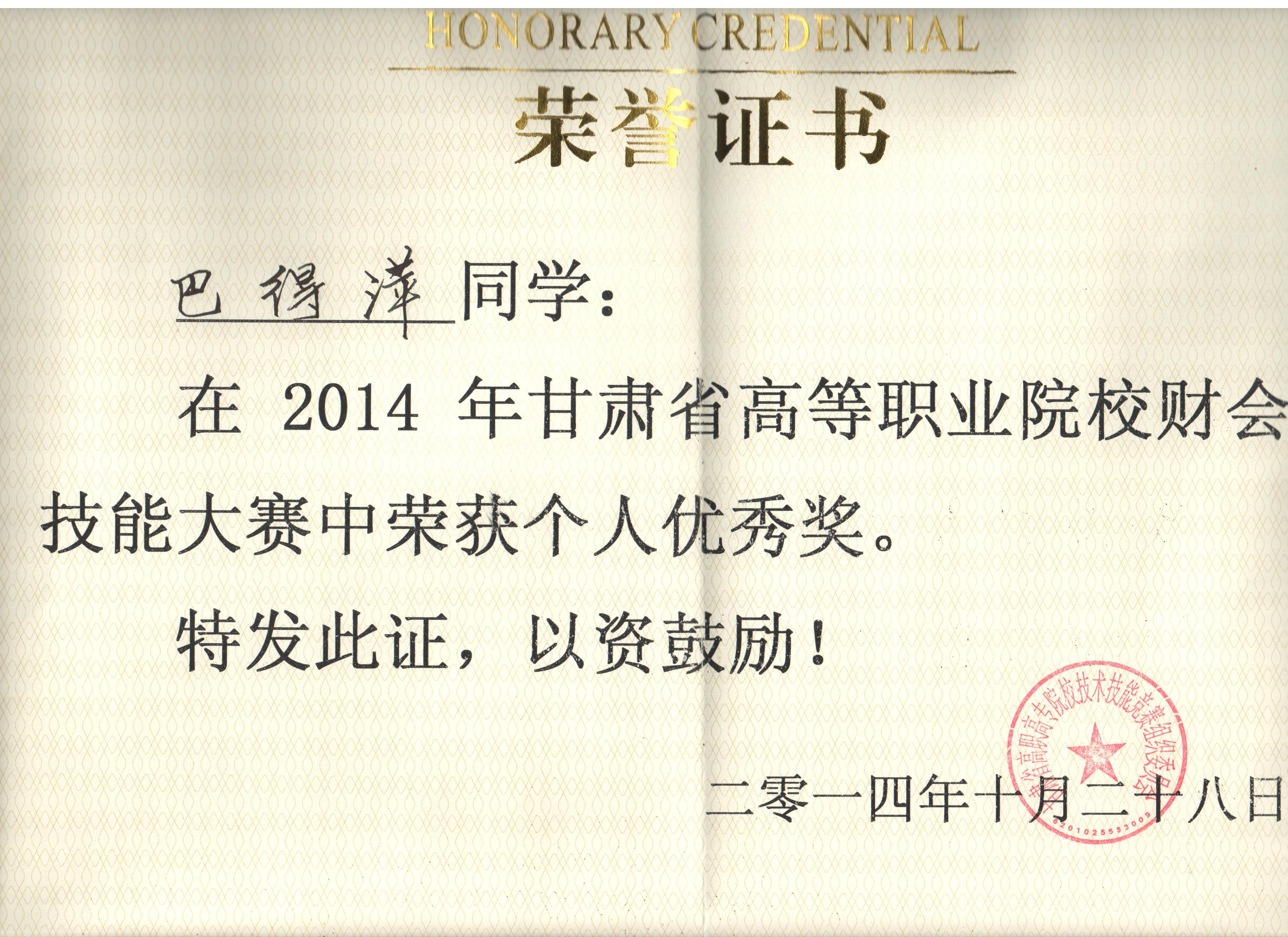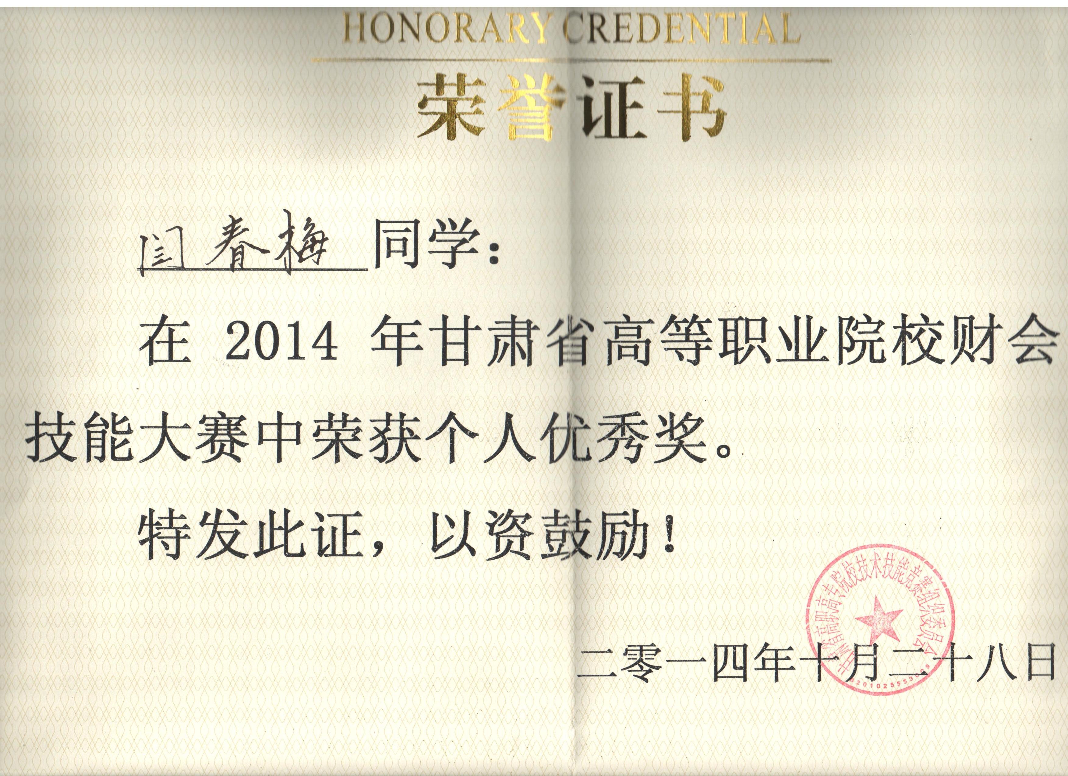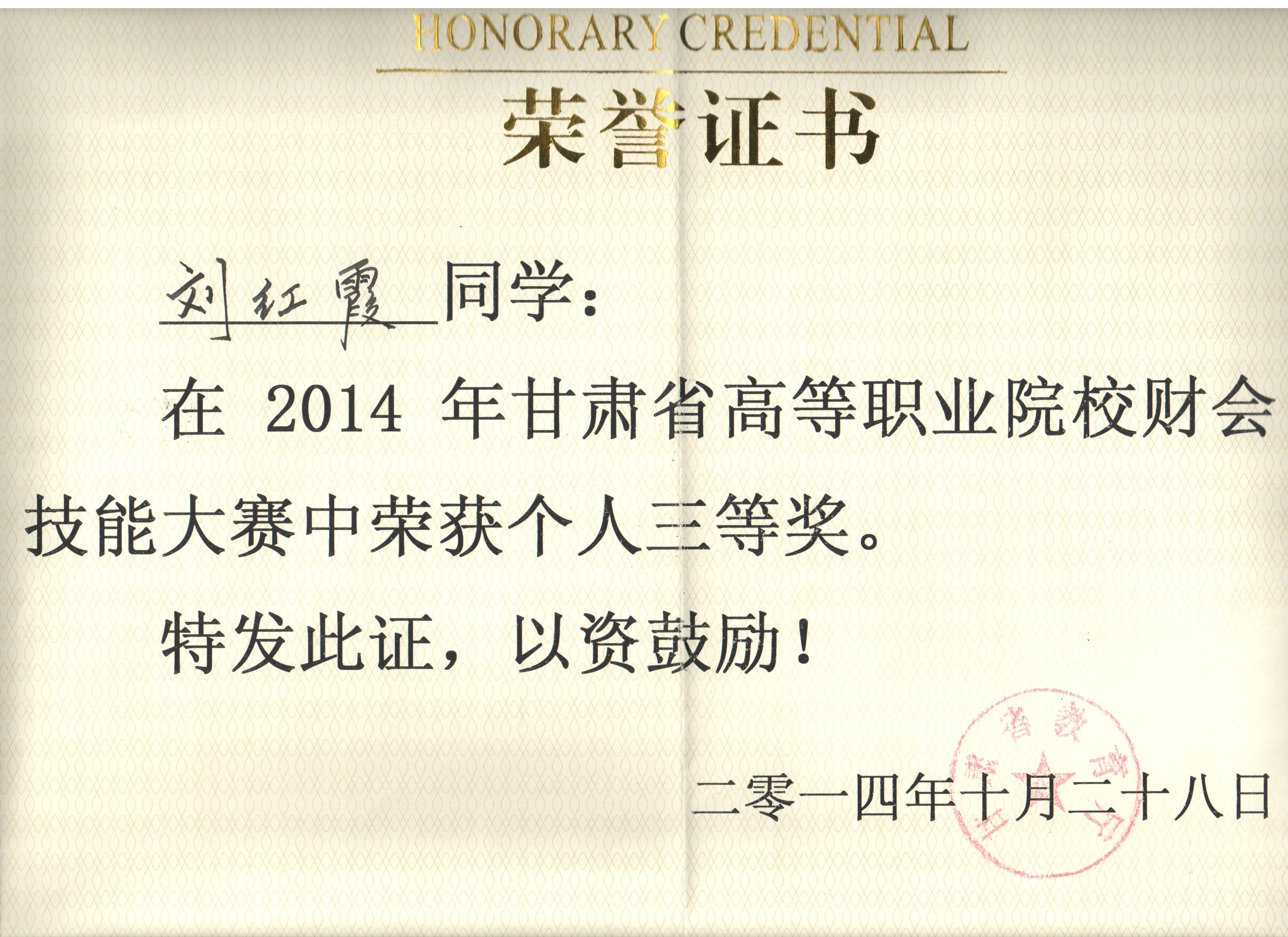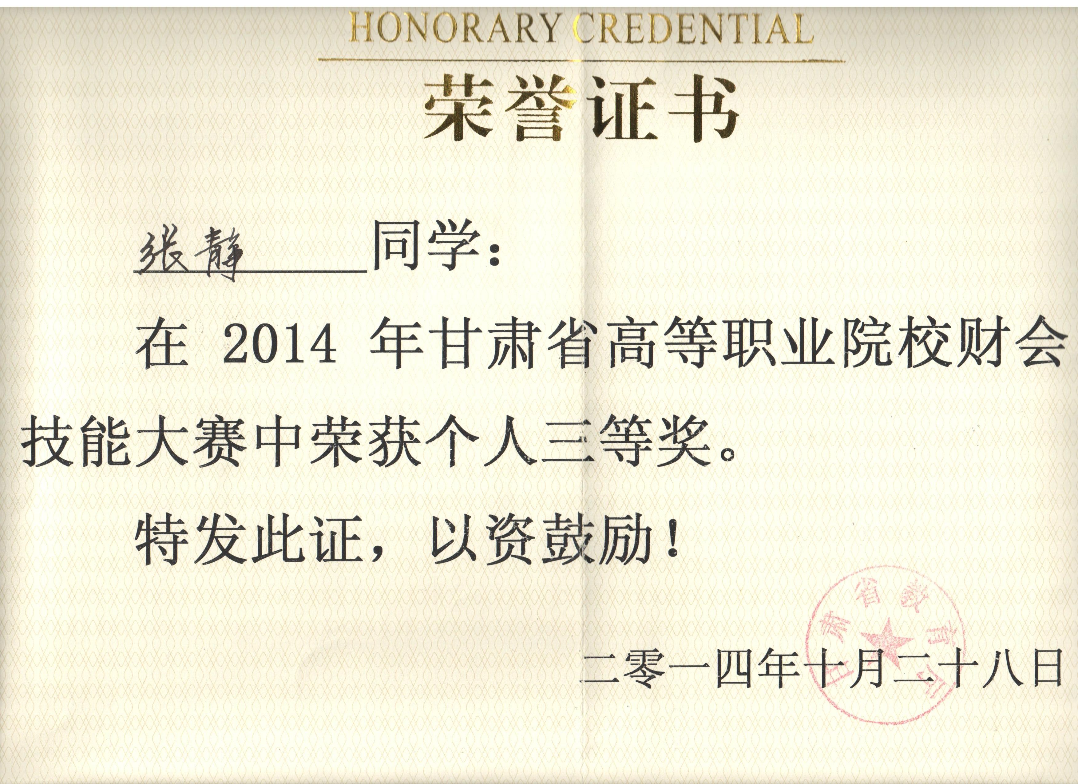 經(jīng)濟(jì)管理系李惠蘭、賀德赟老師指導(dǎo)我系會(huì)計(jì)專業(yè)學(xué)生參加2014年甘肅省高等職業(yè)學(xué)院財(cái)會(huì)技能大賽,榮獲優(yōu)秀獎(jiǎng)。