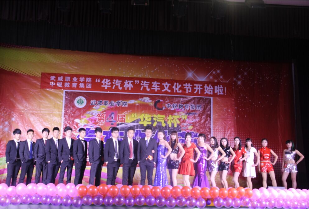 2015年11月24日,以“舞動(dòng)汽車夢想,拼搏華汽人生”為主題的第四屆“ 華汽杯”汽車文化節(jié)在武威職業(yè)學(xué)院中銳汽車實(shí)訓(xùn)中心及學(xué)院大禮堂隆重開幕。本次汽車文化節(jié)由汽車工程系與中銳教育集團(tuán)武威項(xiàng)目部共同主辦,由華汽之星協(xié)會(huì)及系部團(tuán)學(xué)會(huì)承辦,大賽得到了武威職業(yè)學(xué)院駕駛員培訓(xùn)中心的大力支持與贊助,同時(shí),學(xué)院星空影視協(xié)會(huì)、弦舞琴音協(xié)會(huì)、精舞空間舞團(tuán)、“校園好聲音”三屆冠軍友情出演。