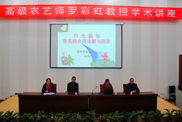 武威市涼州區(qū)農(nóng)業(yè)技術(shù)推廣中心高級(jí)農(nóng)藝師羅彩虹教授結(jié)合自身多年工作經(jīng)驗(yàn),做了題為《日光溫室常見(jiàn)病蟲(chóng)害診斷與防治》的專(zhuān)題講座。講座緊緊圍繞涼州區(qū)日光溫室常見(jiàn)侵染性病害、植物生理病害、常見(jiàn)蟲(chóng)害的癥狀識(shí)別,做了非常到位的講解。同時(shí)也針對(duì)不同的病蟲(chóng)害提出了相應(yīng)的富有成效的綜合防治措施。
